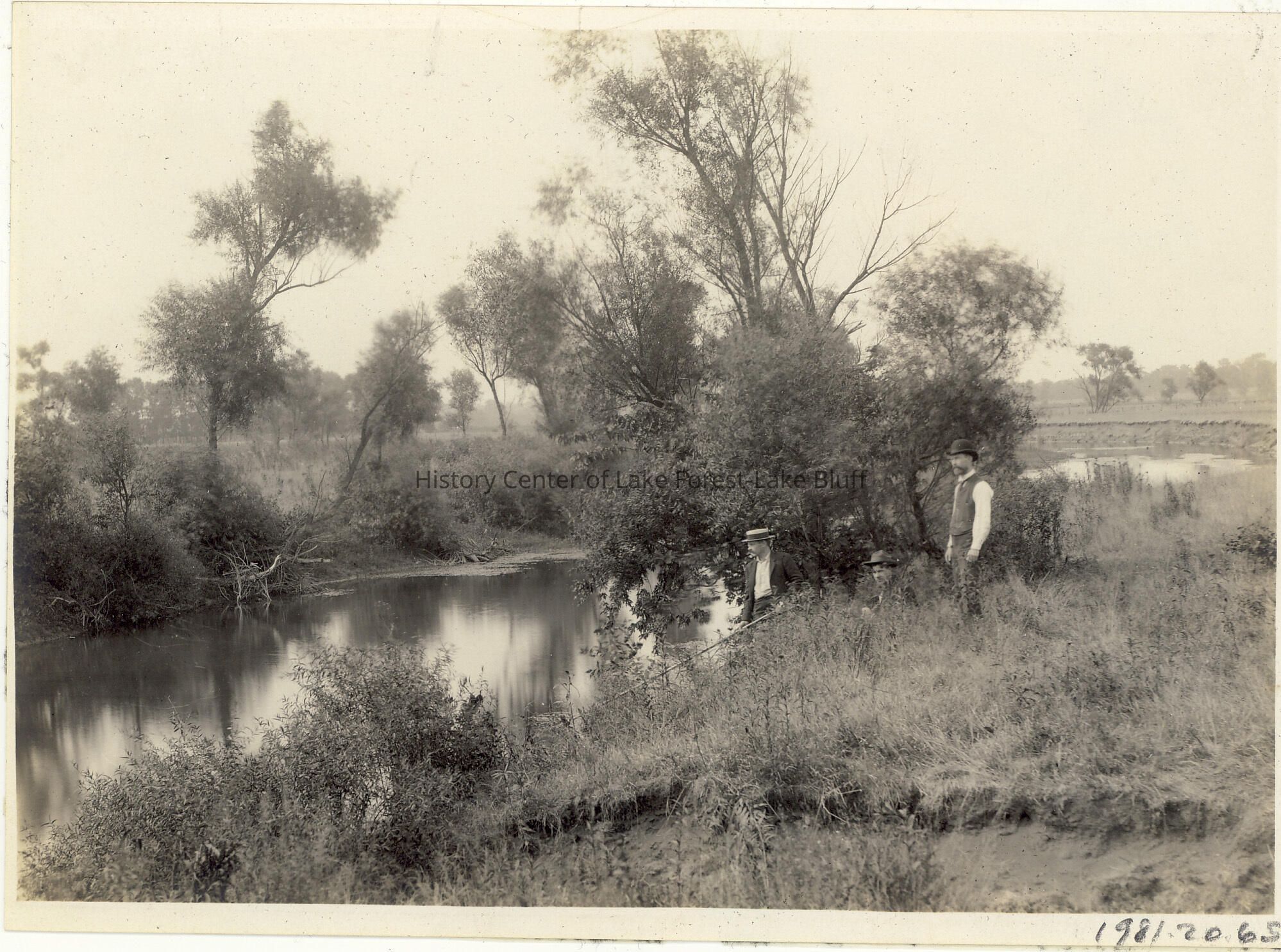 Three unidentified men fishing along the Des Plaines River near Libertyville. See http://www.idaillinois.org/digital/collection/cookmemo11/id/250/rec/5,