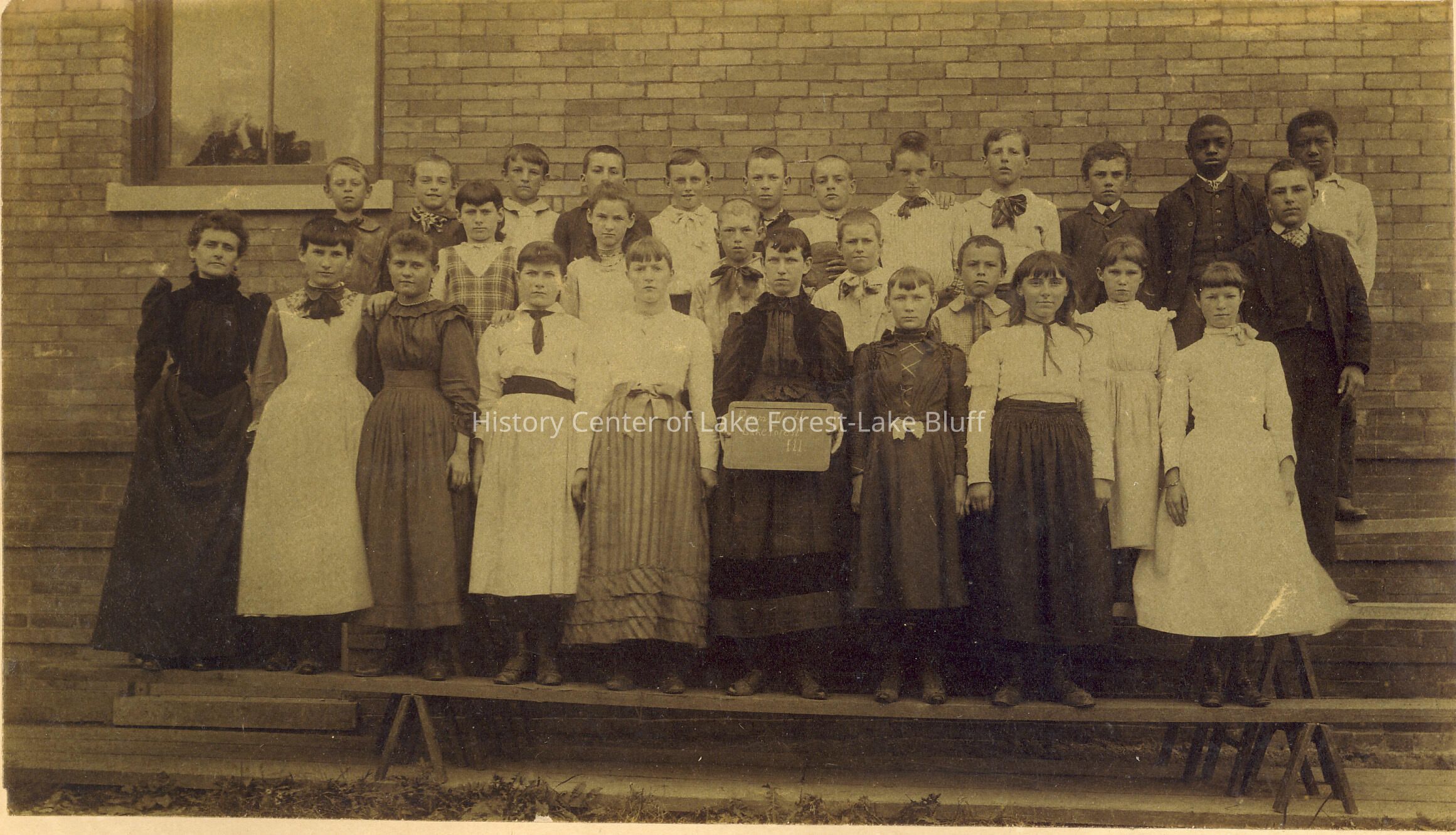 Gorton School? What school is this? Students unidentified. Chalkboard reads, "Room No. 4, Lake Forest, Ill."