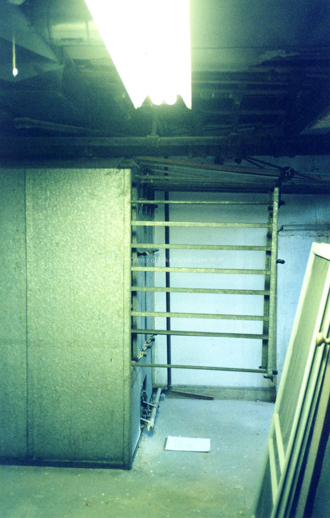 "Scientific Dryer" Model 503, with gas-fired drying rack, manufactured by Scientific Heater Company, Cleveland, OH., with rack fully extended, side view