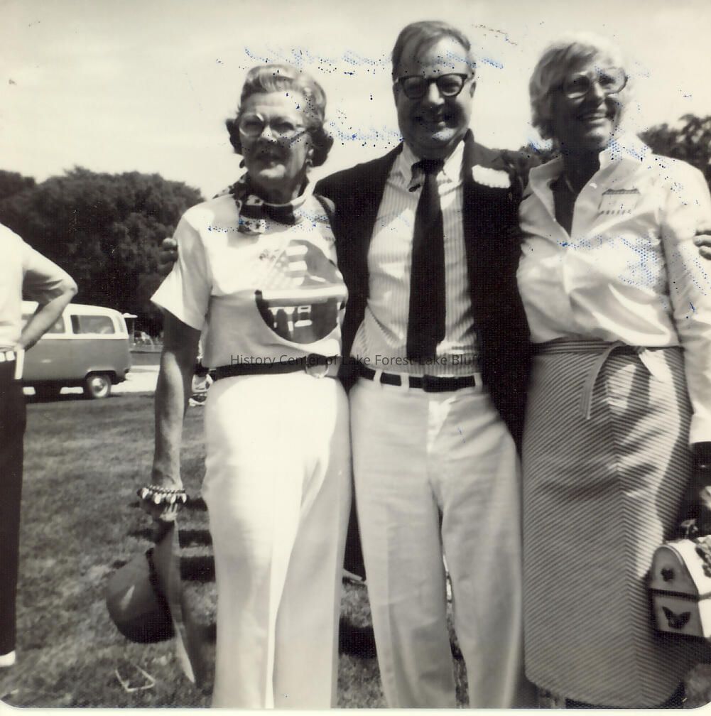 Black and white photograph of alumni Lake Forest Day, August 1976 Verso: "Dot Campbell, Bud Krafft, Jane Wenban"