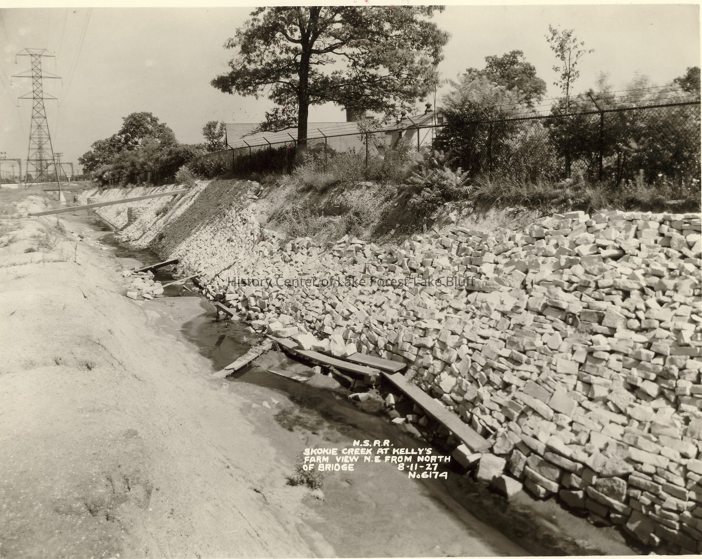 Skokie Creek at Kelly's Farm view northeast from north of bridge, 8-11-27 Could be the farm property of William V. Kelley - Stonebridge estate N.S.R.R.