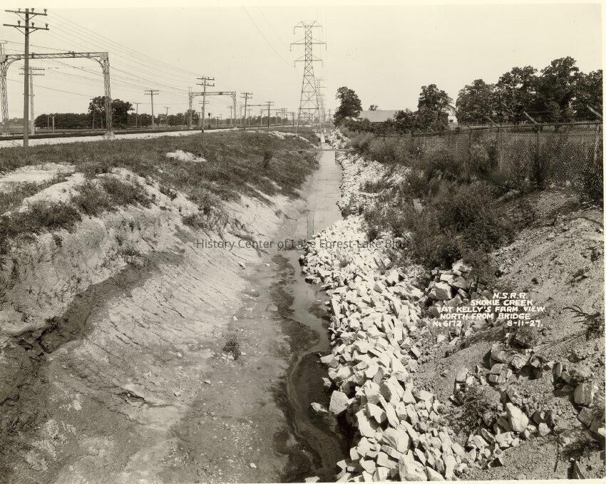 Skokie Creek at Kelly's Farm view north from bridge, 8-11-27 Could be the farm property of William V. Kelley - Stonebridge estate N.S.R.R.