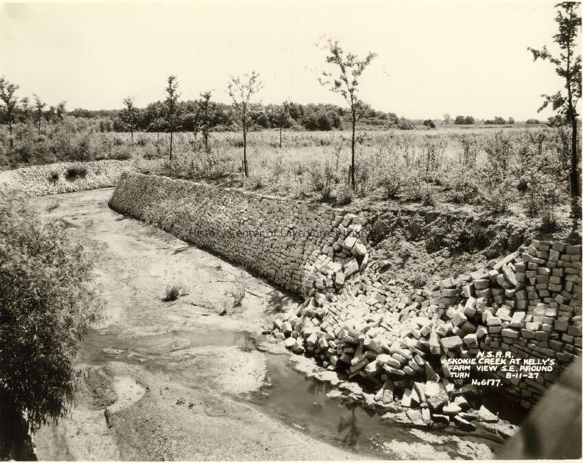 Skokie Creek at Kelly's Farm view southeast to bridge, around turn 8-11-27 Could be the farm property of William V. Kelley - Stonebridge estate N.S.R.R.