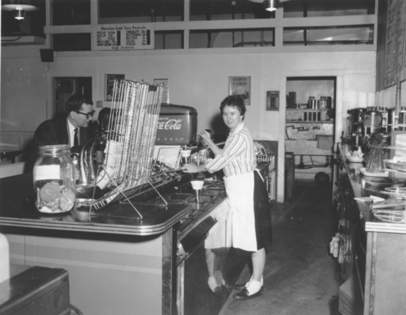 Lake Bluff Business District, interior of a soda fountain. Possibly Lake Bluff Pharmacy at 100 Scranton Avenue.
