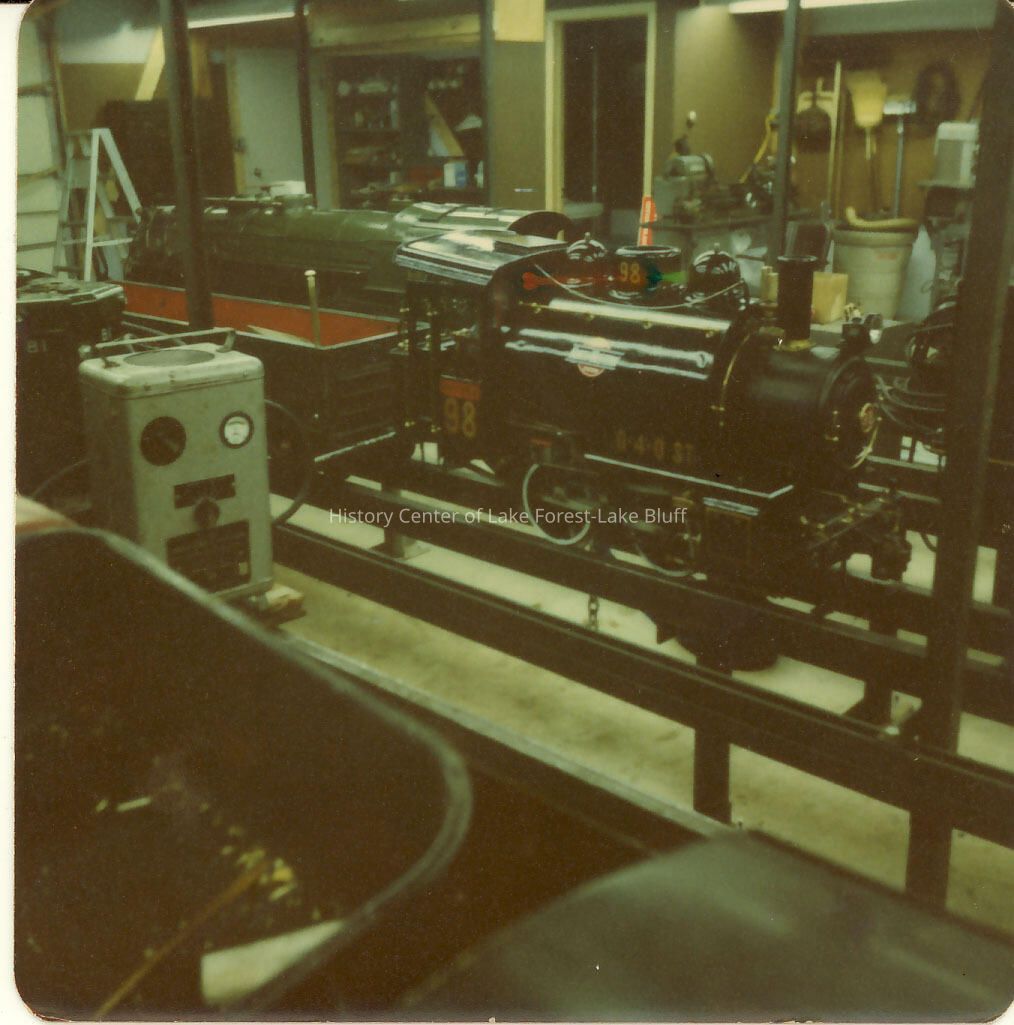 Stanley Wells Photograph album of toy trains, many of which were taken at the Donnelly Farm Color Inside the train barn.