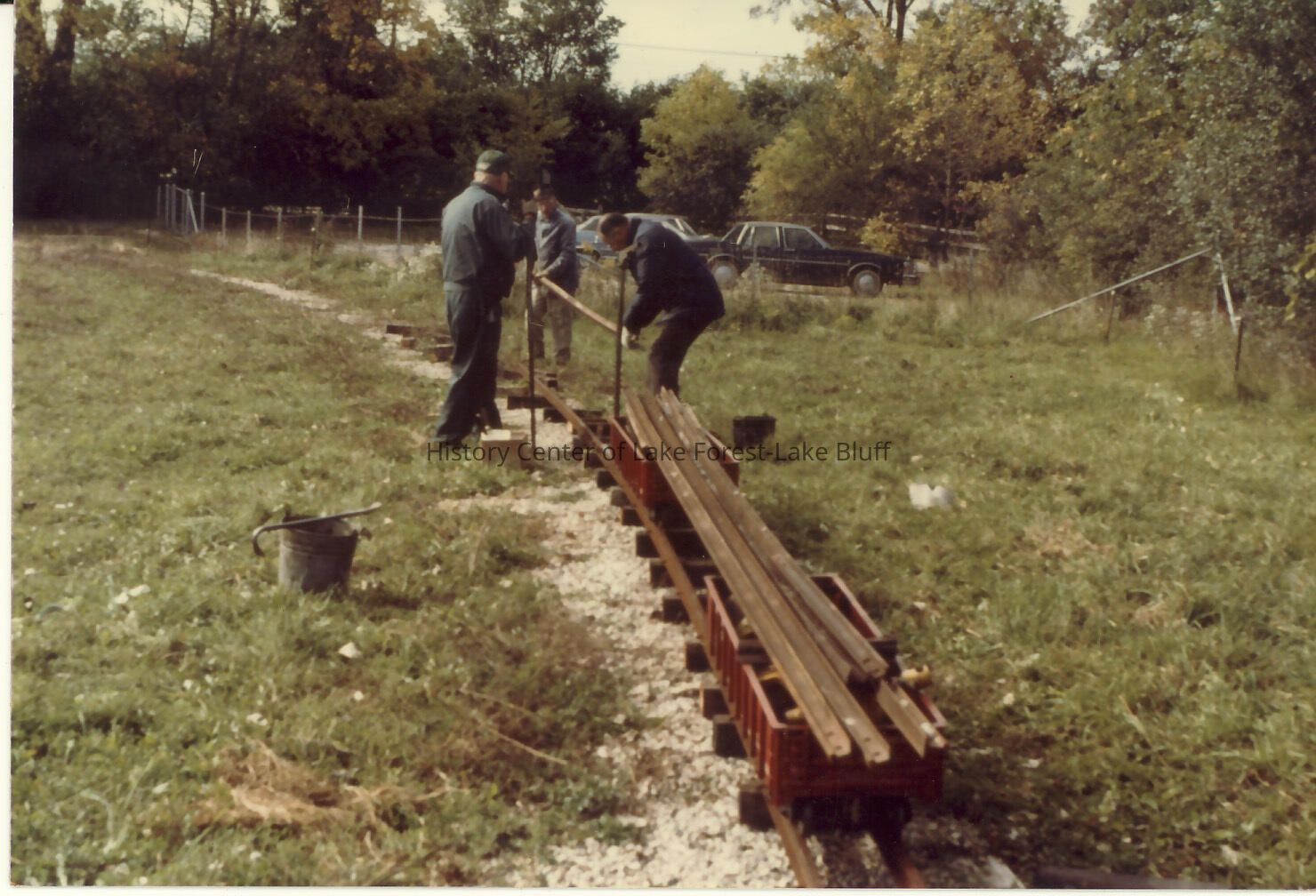 Stanley Wells Photograph album of toy trains, many of which were taken at the Donnelly Farm Color Working on the tracks. photo by Fred M. Springer
