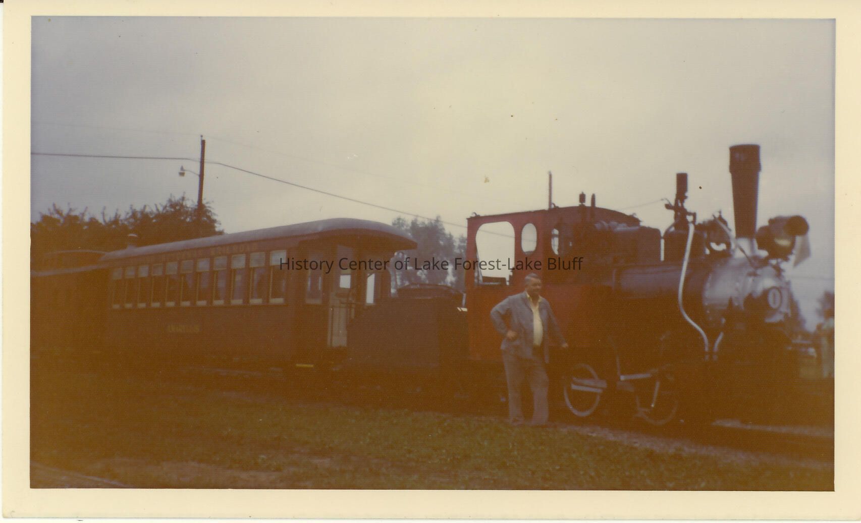 Stanley Wells Photograph album of toy trains, many of which were taken at the Donnelly Farm Full -size antique engine and passenger car.
