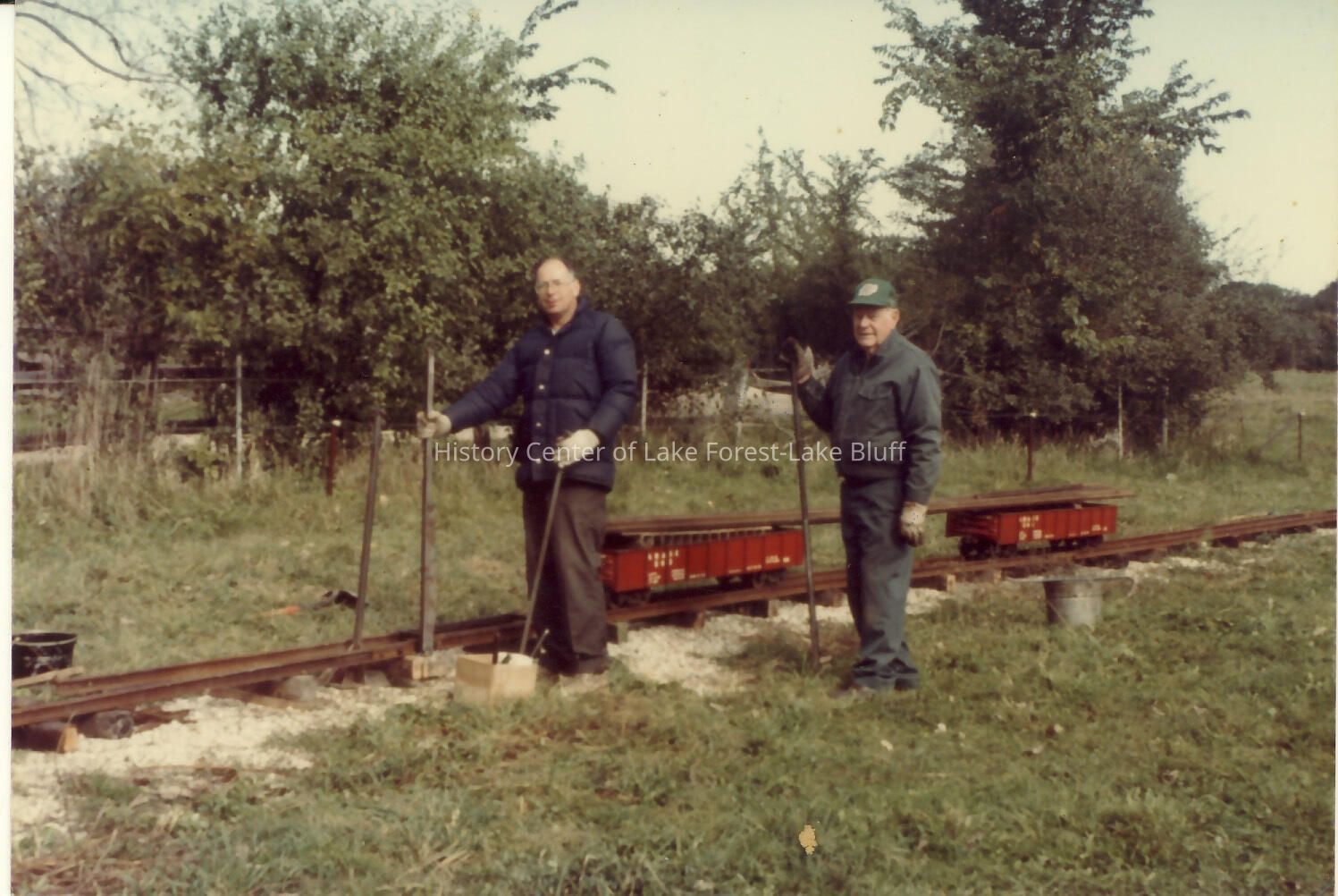 Stanley Wells Photograph album of toy trains, many of which were taken at the Donnelly Farm Color Working on the tracks. photo by Fred M. Springer