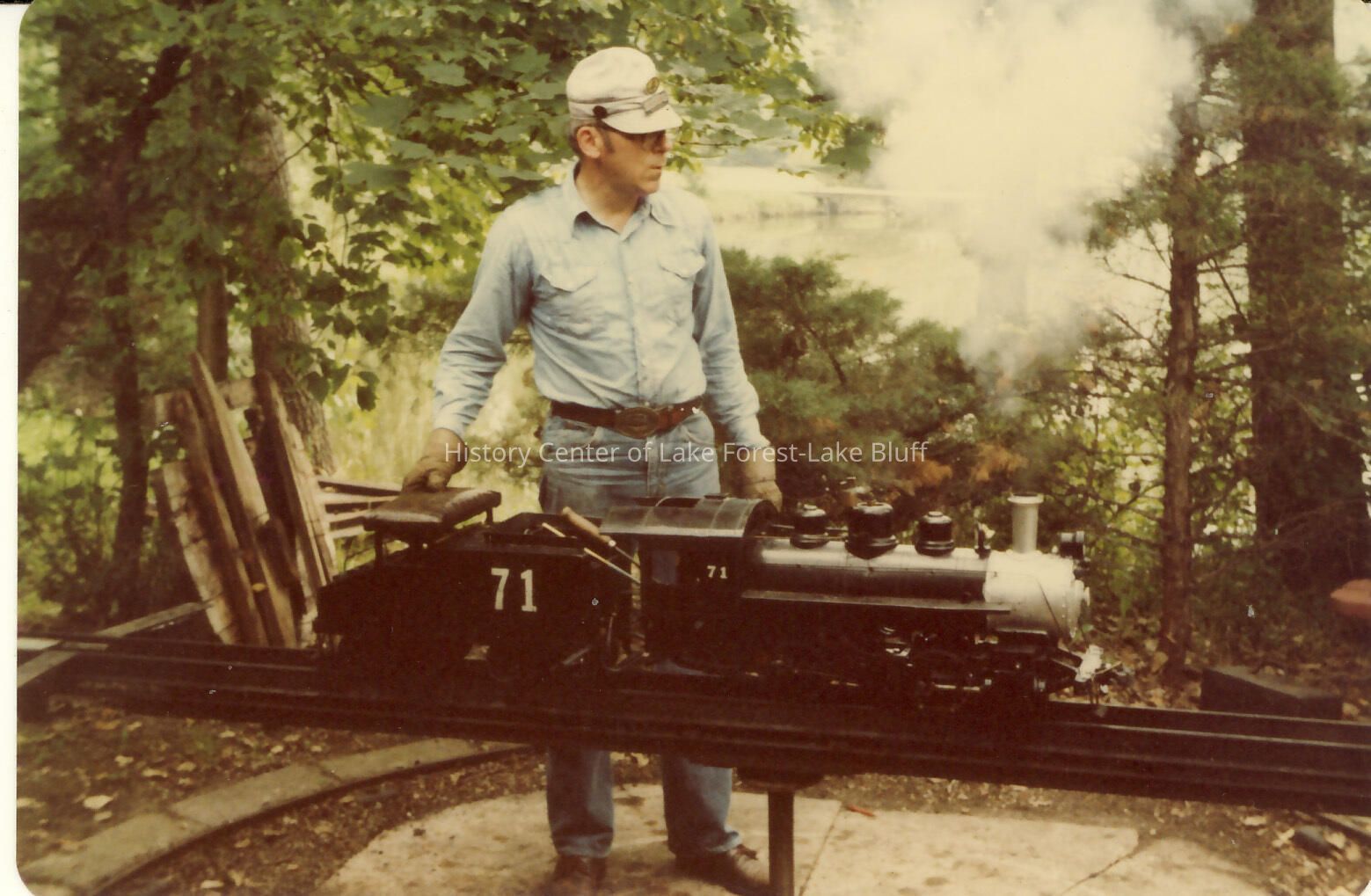 Stanley Wells Photograph album of toy trains, many of which were taken at the Donnelly Farm Color Working on the tracks.