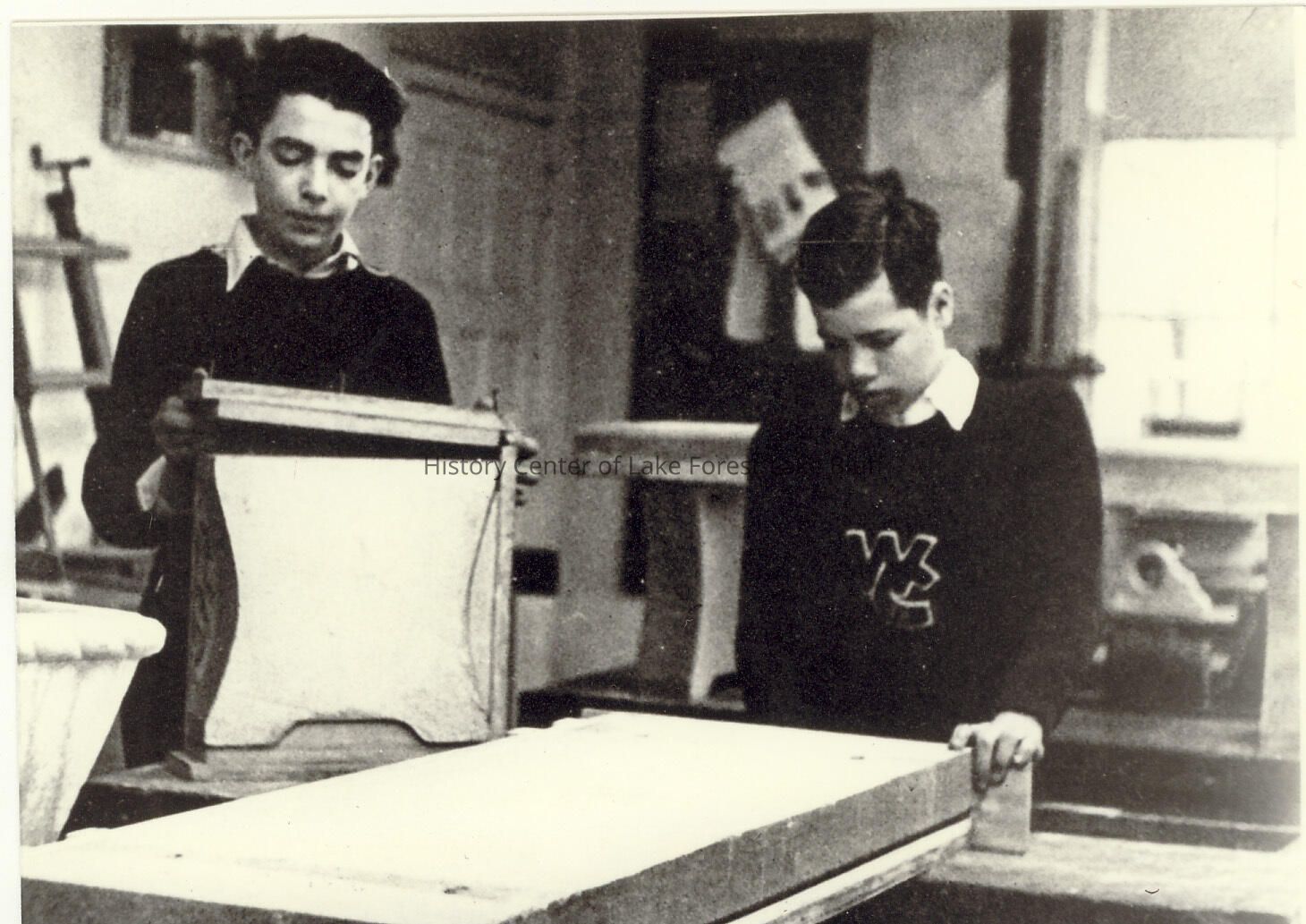 Two Students assembling in wood shop, Colby Ingram and Bruce Sisler