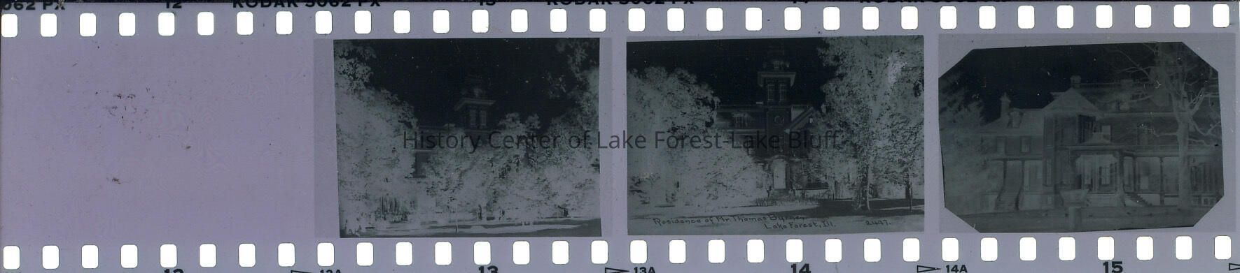 Thomas Byrne Family (negatives only). Four negatives: group of men, three views of Forest Lawn, 644 East Deerpath. 2 copies.