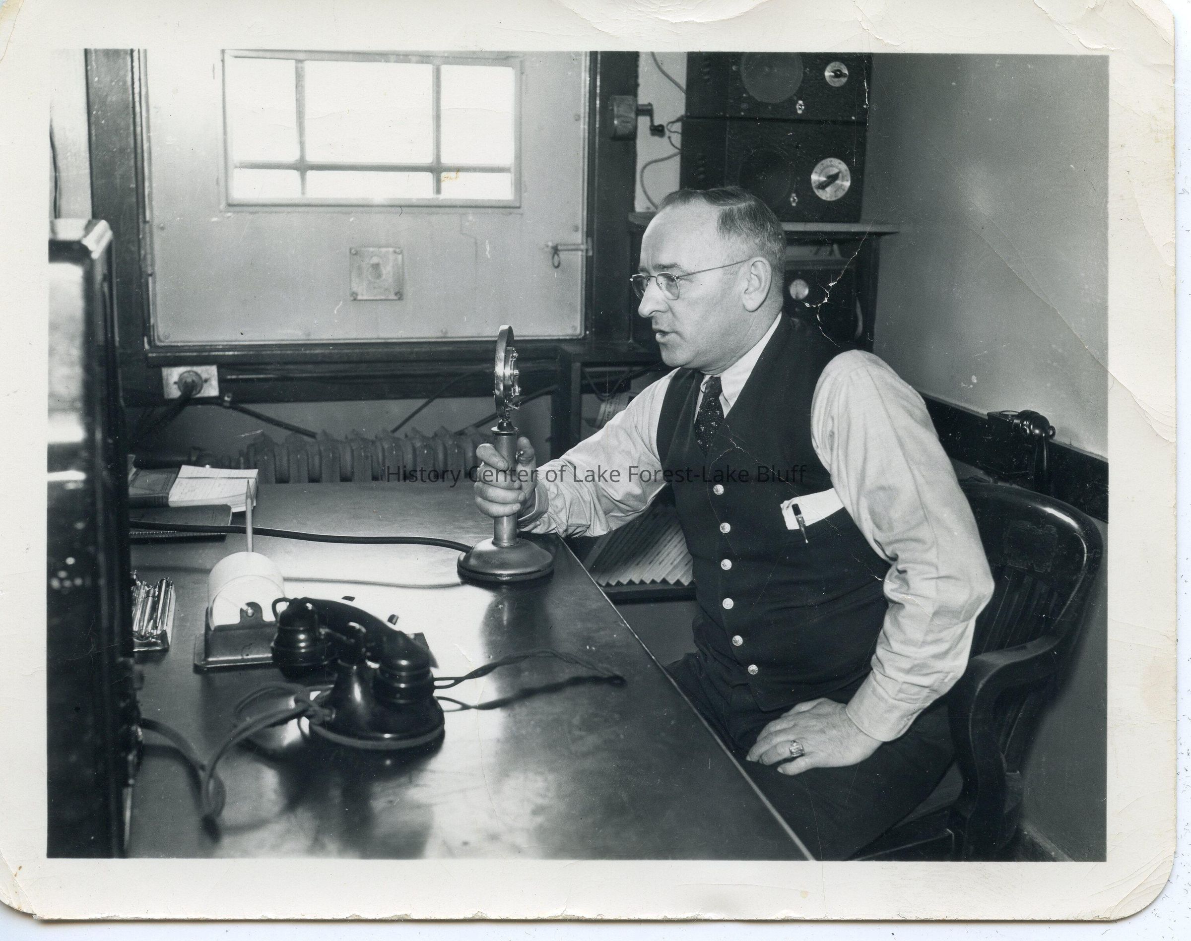 Frank Tiffany using the 2 -way police radio, 1930s