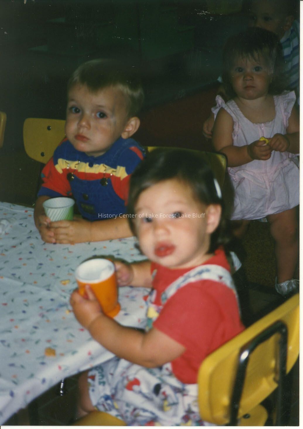 3 toddlers sitting around a table with cups. Parks and Recreation activity or class.