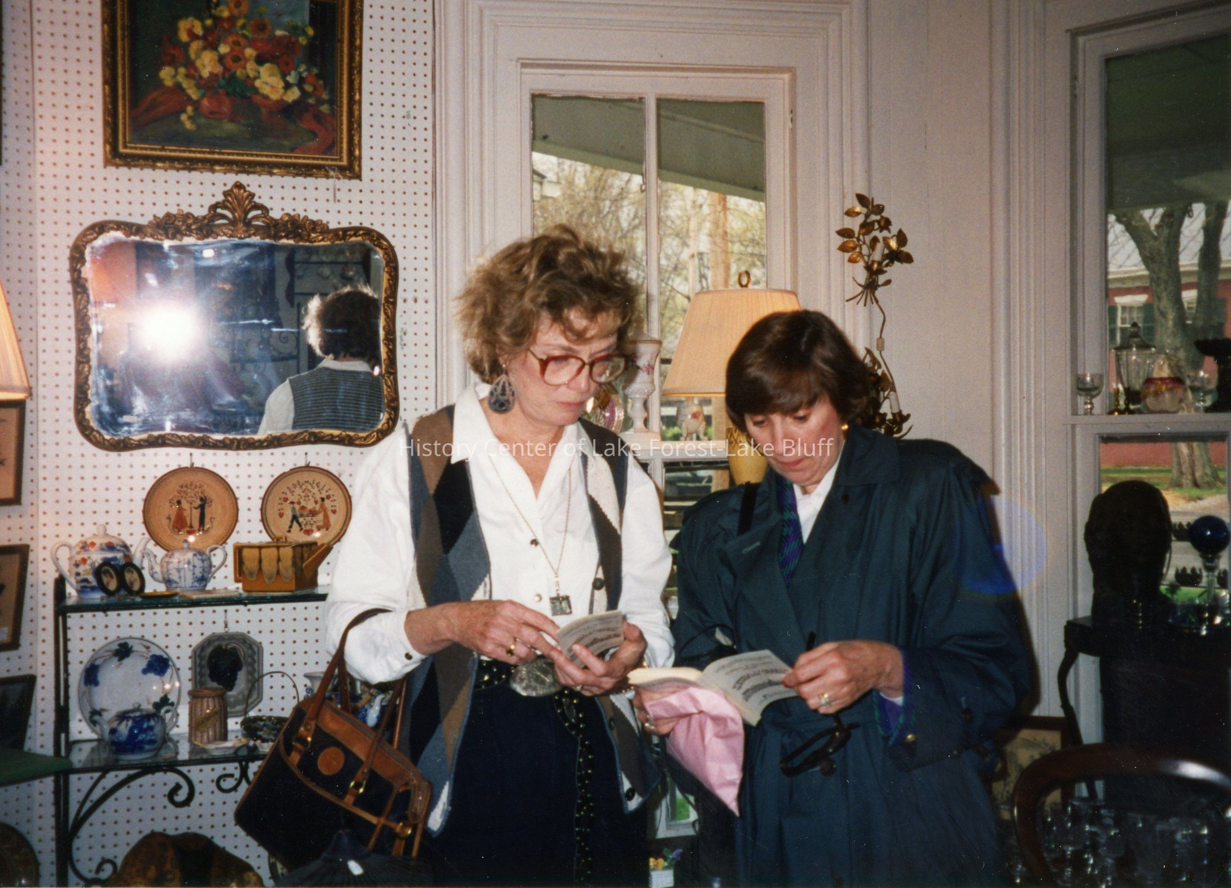 Two members of the Market Square Questers look through booklets in a shop.Photograph Details