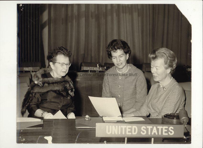 Emma Walbridge, Virginia Fiester and Mrs. Edison Dick, member of the U.S. Delegation to the United Nations 1965, on their trip to the UN
