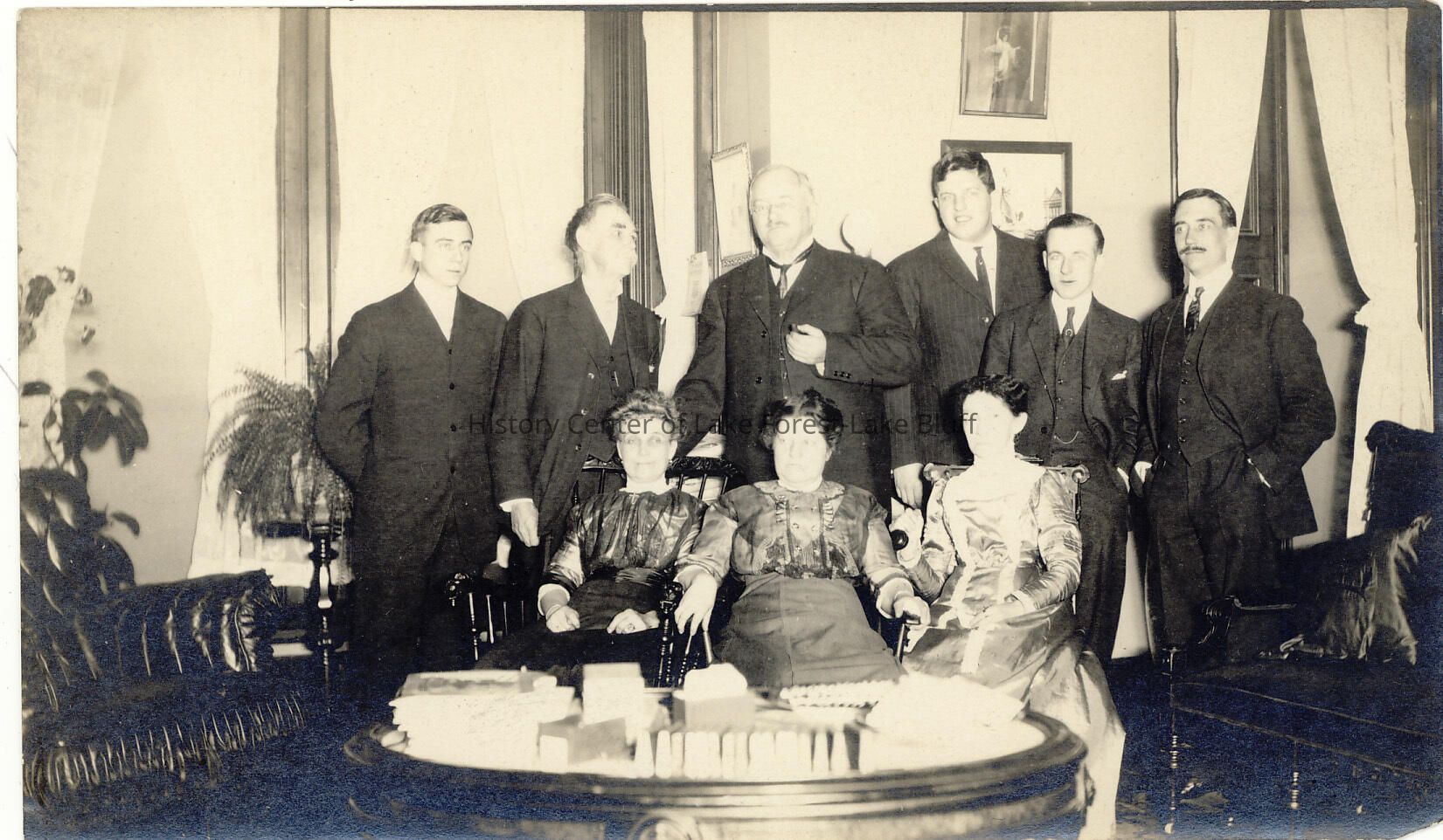 Group of unidentified people-six men and three women, see also 2004.20.97 and .99 Harvey family in Lake Bluff ?