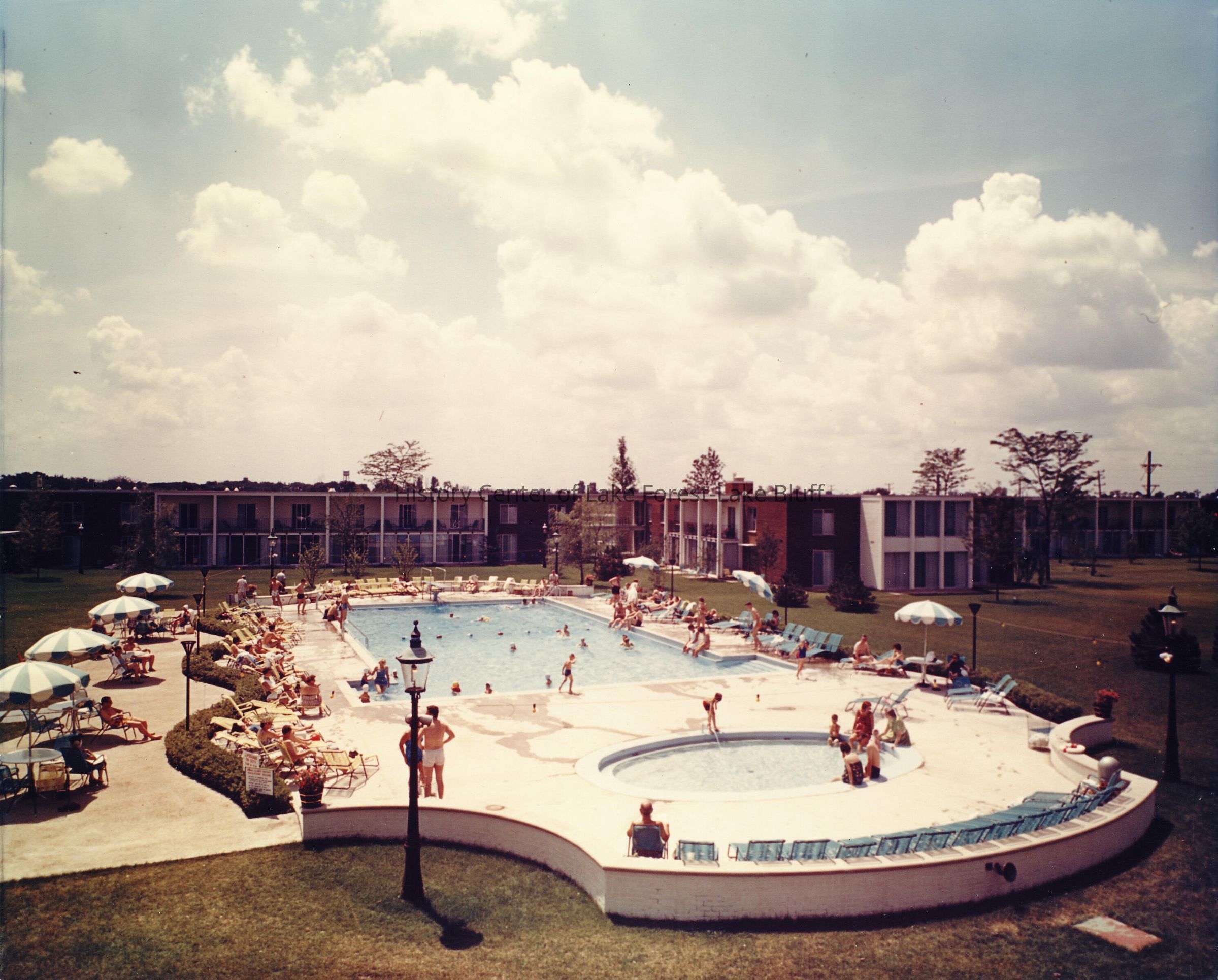 Exterior view of pool of unidentified Michigan hotel.