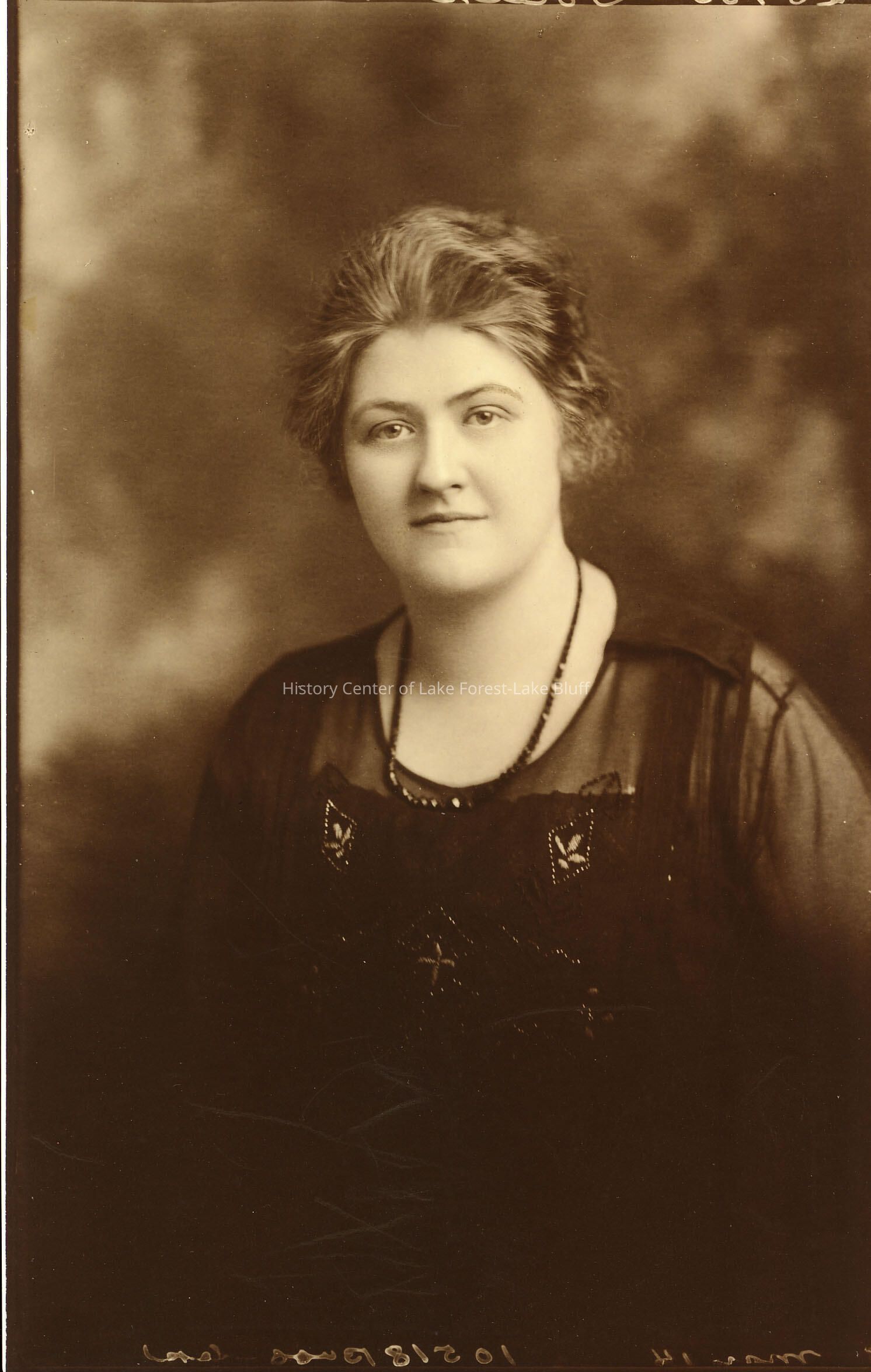 Portrait of young woman in dark top. Full face with hair up. same woman in 2002.121.13