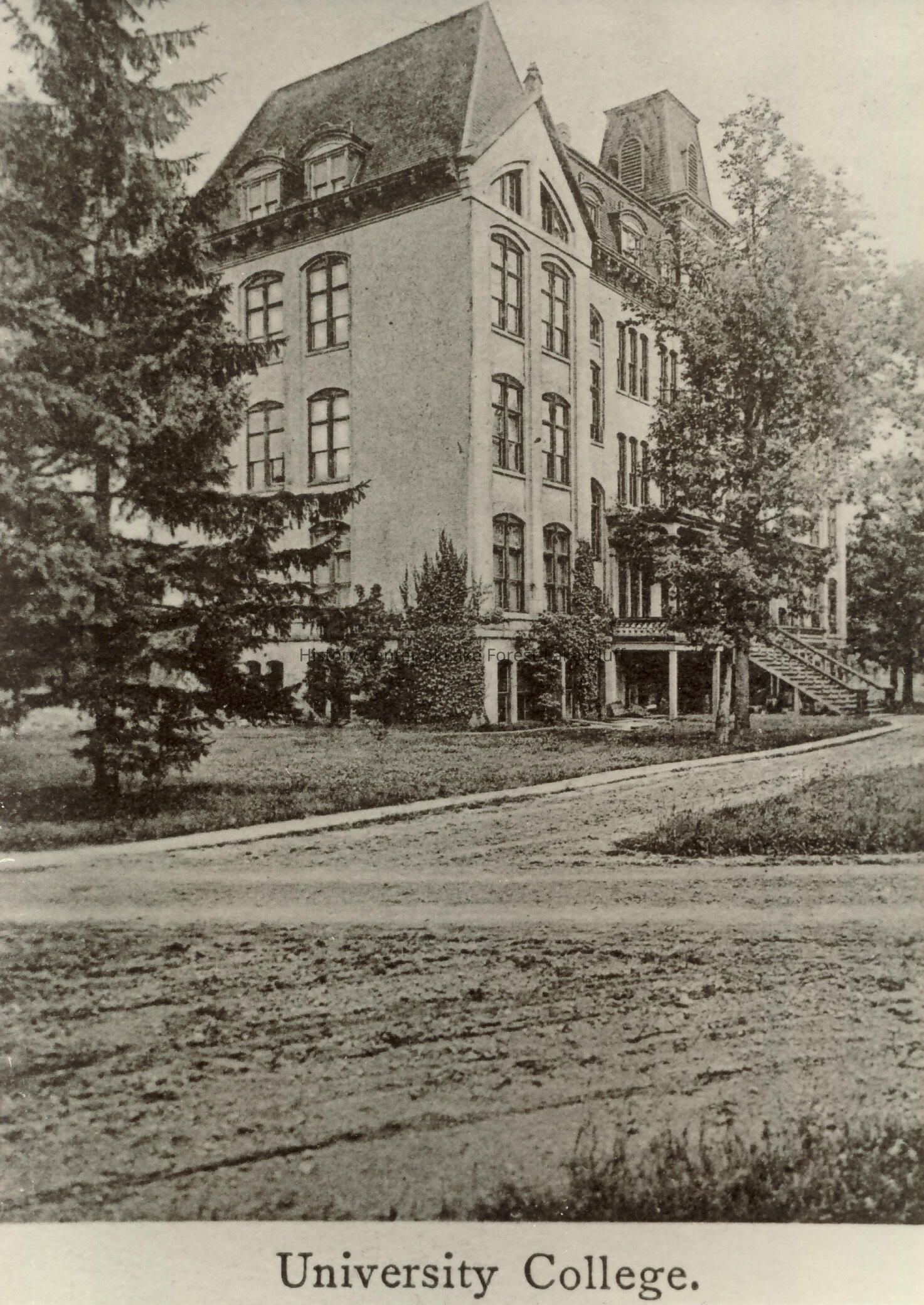 Photo print of Lake Forest College building labeled "University College." Dated 1906. Identical to 2001.105.13. negative included