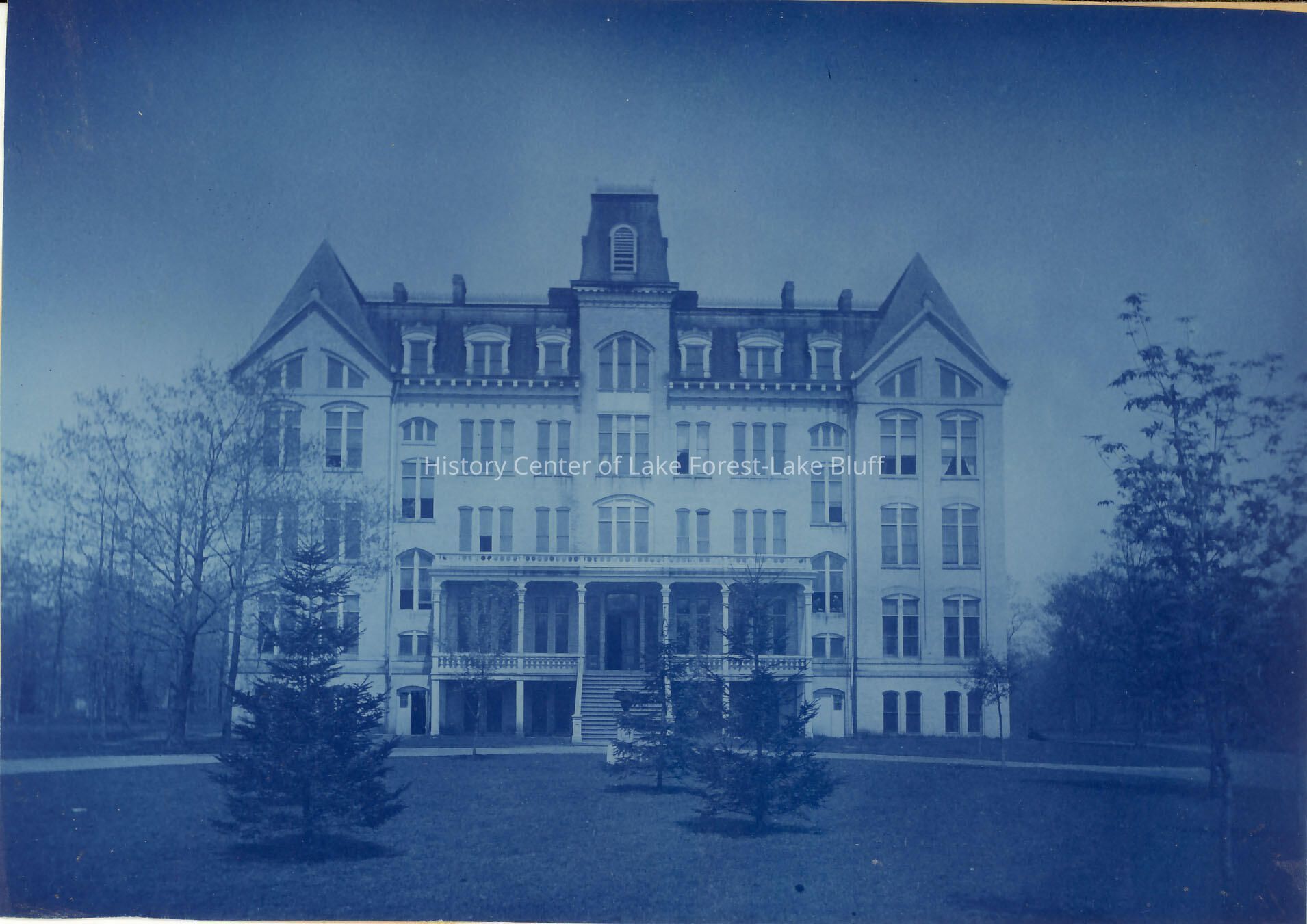 University Hall, later College Hall, later Young Hall Lake Forest University (later Lake Forest College) 1885 - cyanotone image