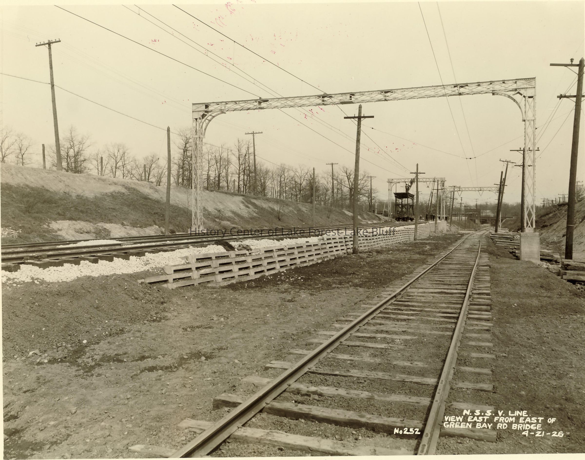 North Shore Line Skokie Valley Route Construction View east from east of Green Bay Road Bridge, Lake Bluff N.S.S.V. line 4/21/1926
