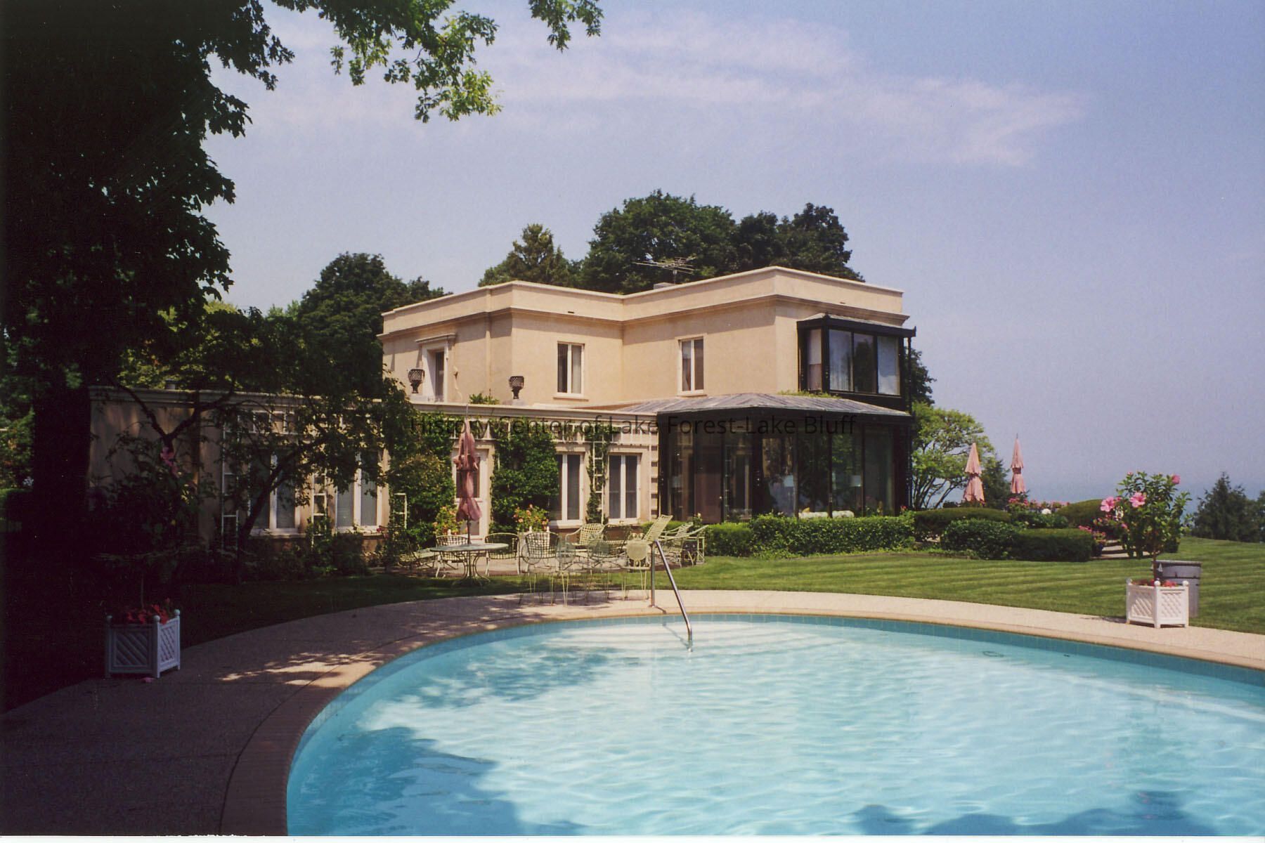 View from the pool toward the Edward Byron Smith house, 1133 North Lake Road. Donated for possible inclusion in the Walter Frazier book (architect).