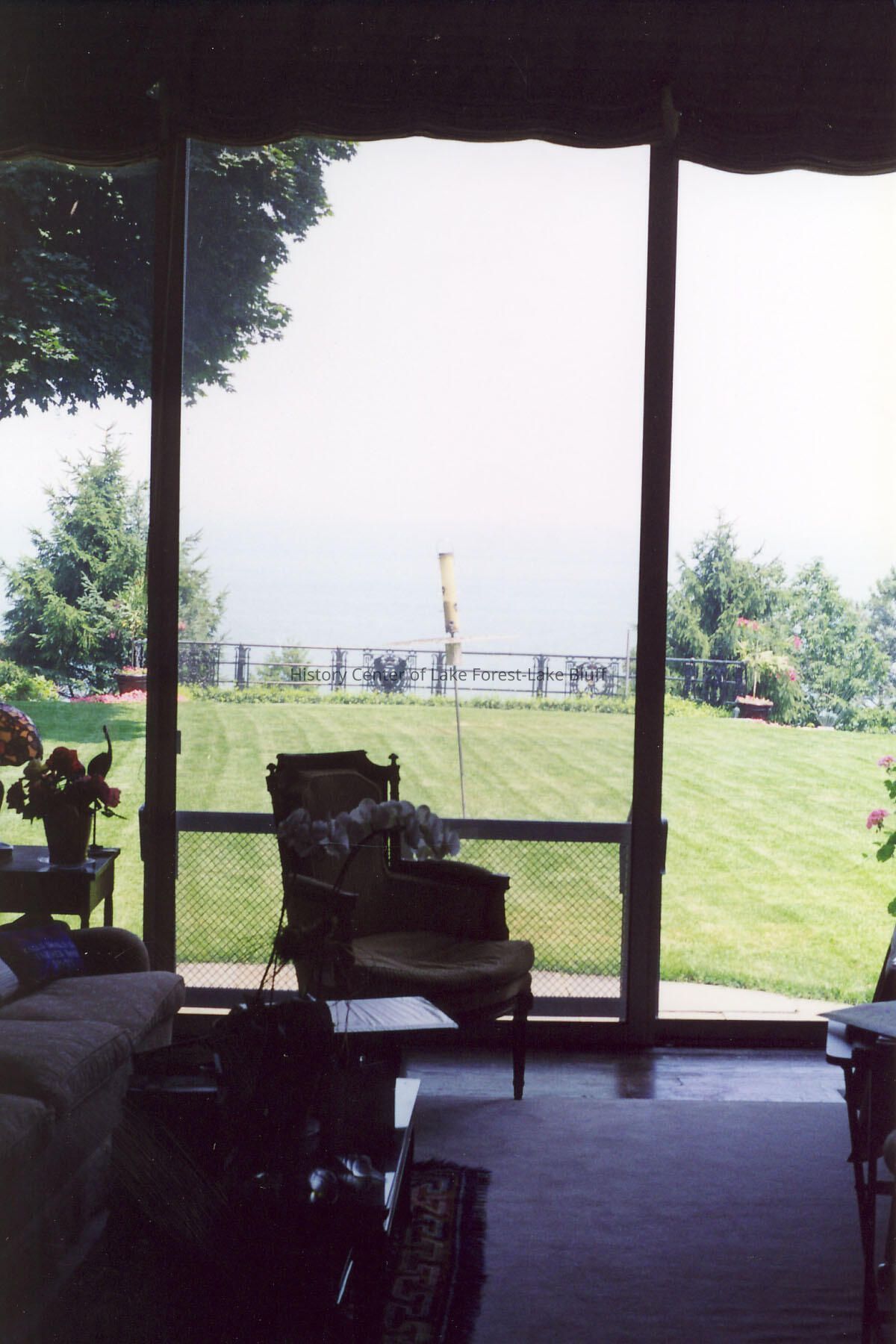View of back lawn and Lake Michigan from porch of Edward Byron Smith house. 1133 North Lake Road. Donated for possible inclusion in Walter Frazier book (architect).