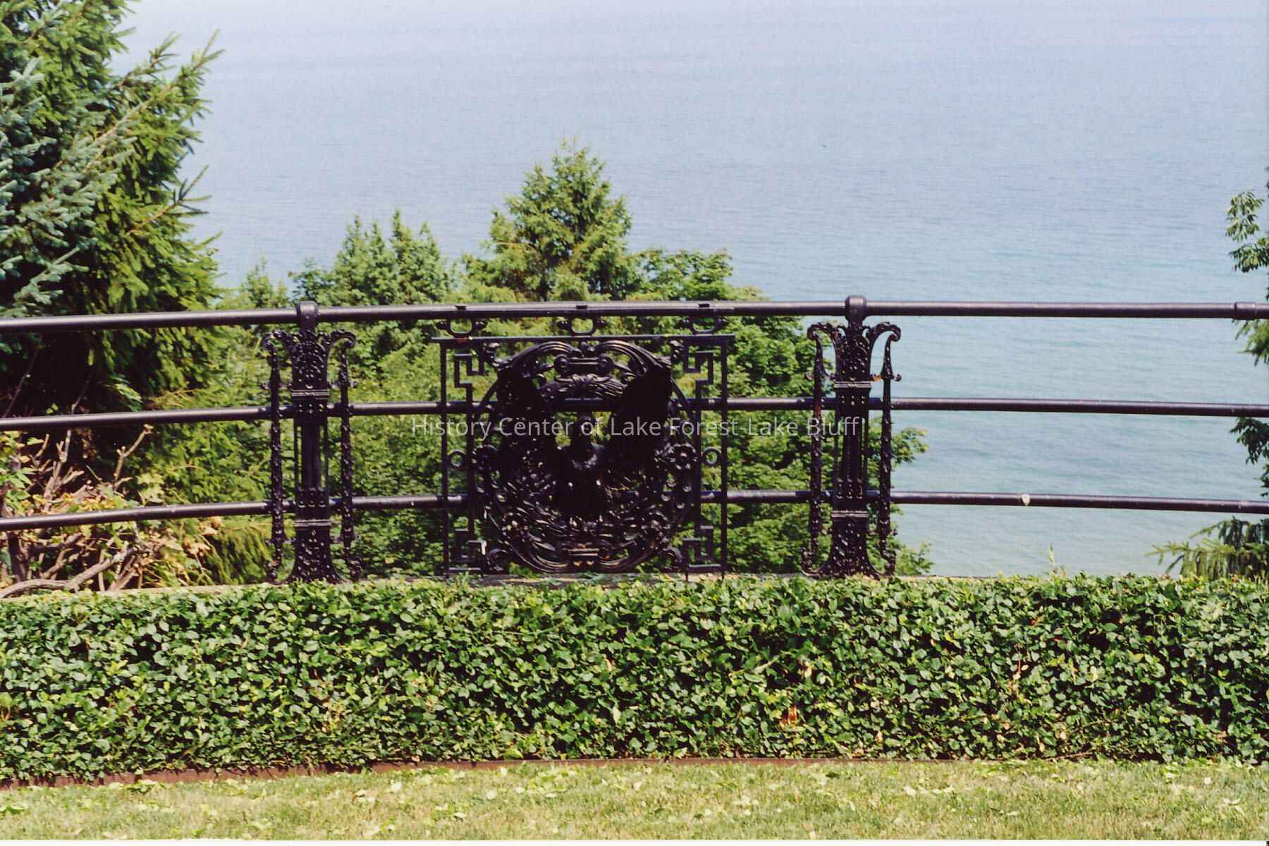 View of Lake Michigan and fence outside Edward Byron Smith house, 1133 North Lake Road. Donated for possible inclusion in Walter Frazier book (architect).