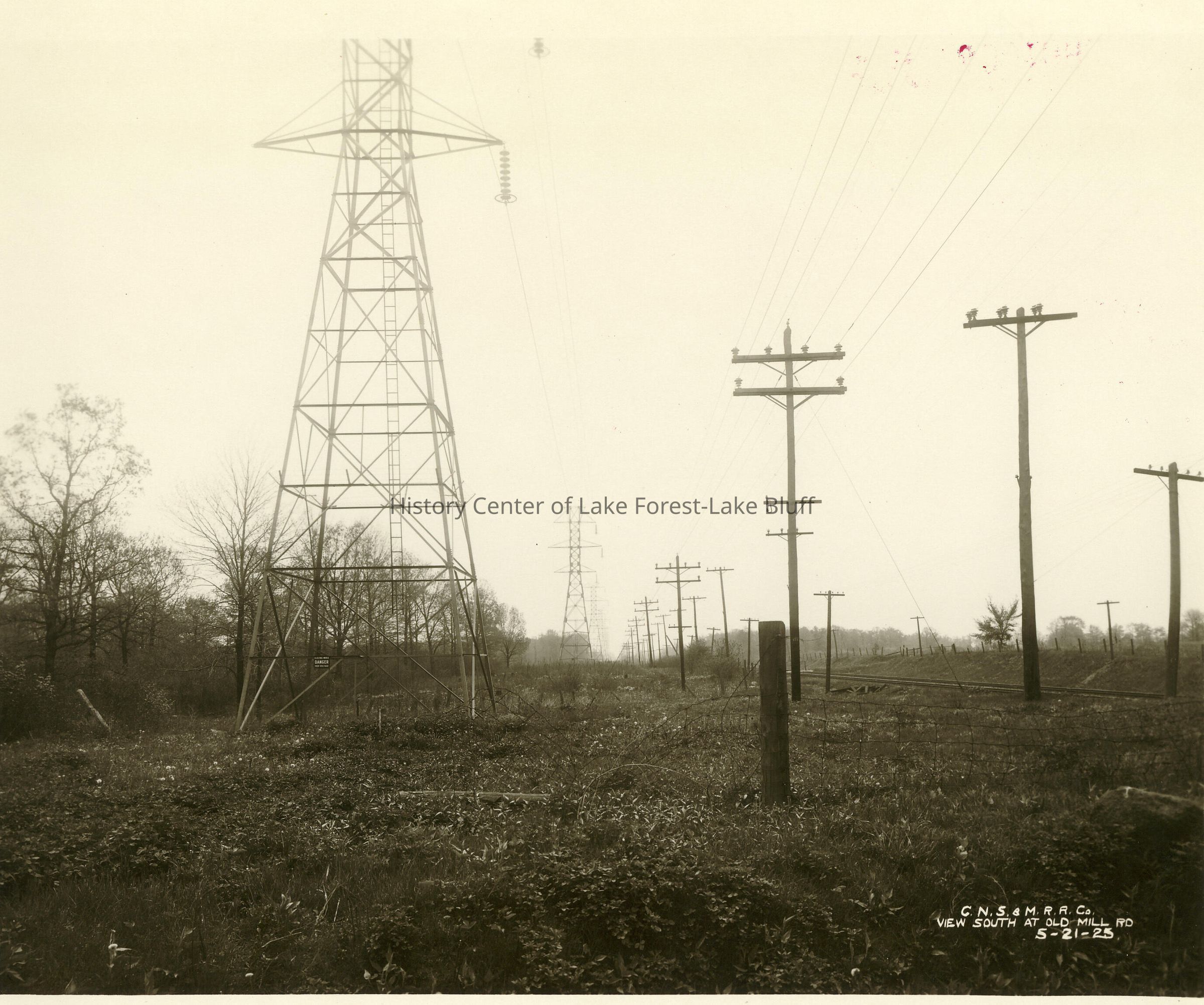 View south of Old Mill Road in west Lake Forest 5-21-1925 original property of North Shore Line Advertising Dept. Chicago, IL C.N.S. & M.R.R., Co.