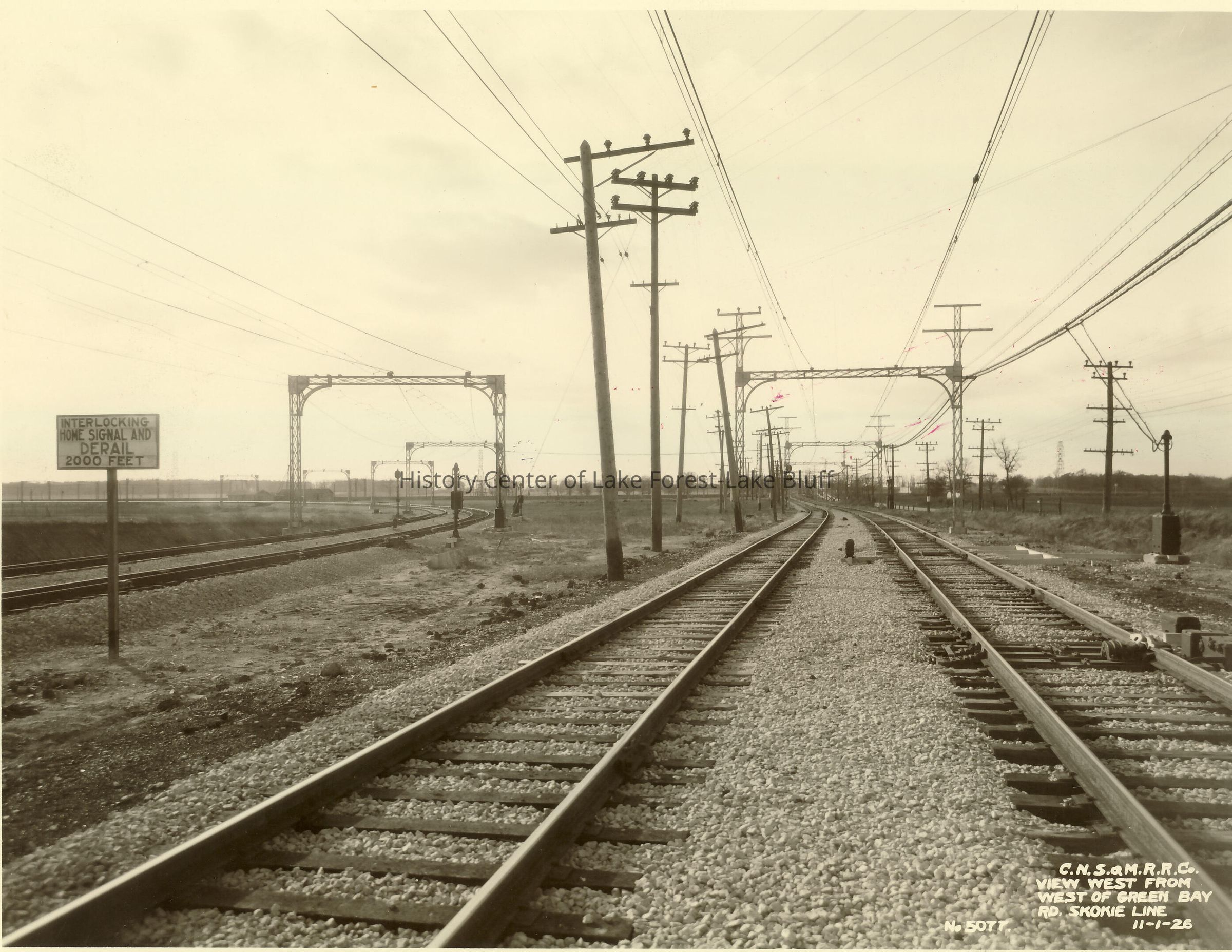North Shore Line Skokie Valley Route Construction View west from west of Green Bay Road Skokie Line. C.N.S. & M.R.R.C. November 1, 1926