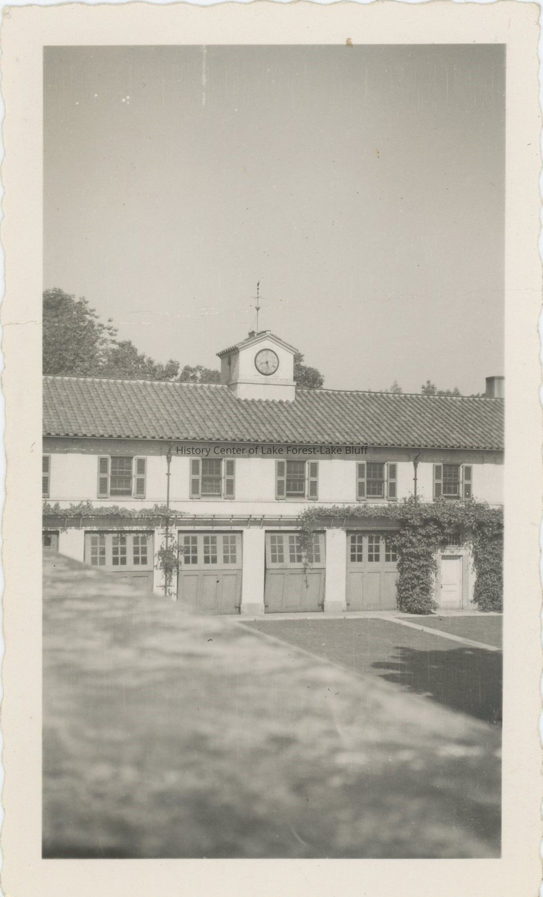 Garage block or staff "court" at Villa Turicum, the Harold F. and Edith Rockefeller McCormick estate. From the collection of John "Jack" and Edythe Dunford, estate caretakers. c. 1930s.