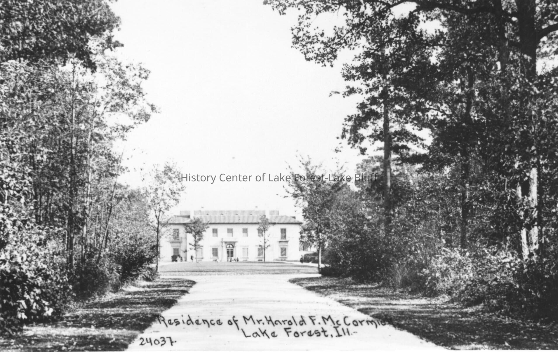 Black and white photograph of Villa Turicum - Edith R. & Harold F. McCormick Residence of Harold McCormick credit image to the State Historical Society of Wisconsin also included is a slide of image See 2001.29.2 for original Post Card.
