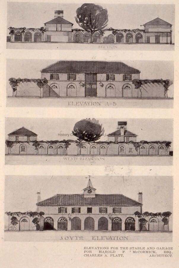 Villa Turricum 1909 Sheridan Road Harold F. McCormick Charles A. Platt - Architect Donated by R. Vesely Elevation for the stable and garage