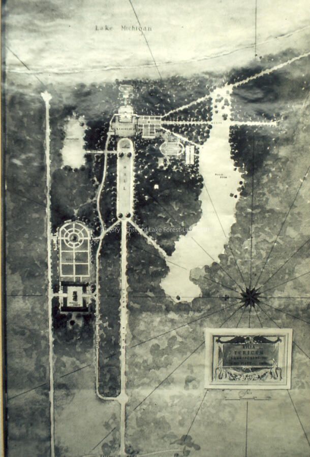 Villa Turricum 1909 Sheridan Road Harold F. McCormick Charles A. Platt - Architect Arthitect's Rendering of Villa Turicum Landscaping Aerial view