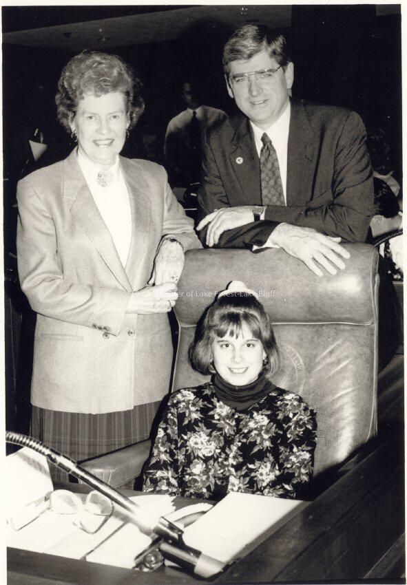 Virginia Fiester Frederick with Representative Lee Daniels, Minority Leader and Lee's daughter. At this time Virginia was probably Assistant Minority Leader. see also 2007.4.58