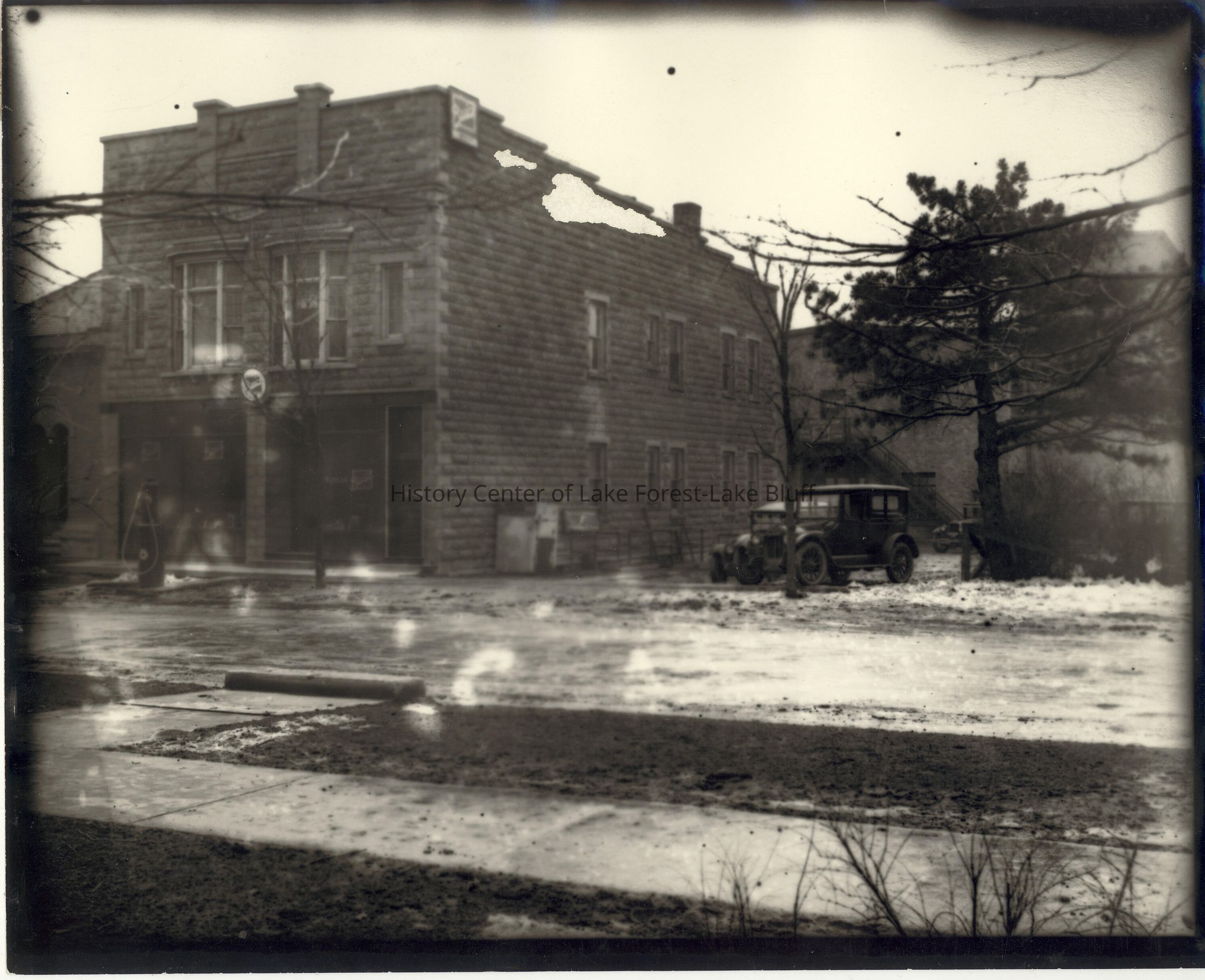 Image of Wenban Buick with parking lot in view. 233 East Deerpath. Corner of Deerpath and Oakwood. Also Wenban Funeral Home / Undertaker. c. 1920s