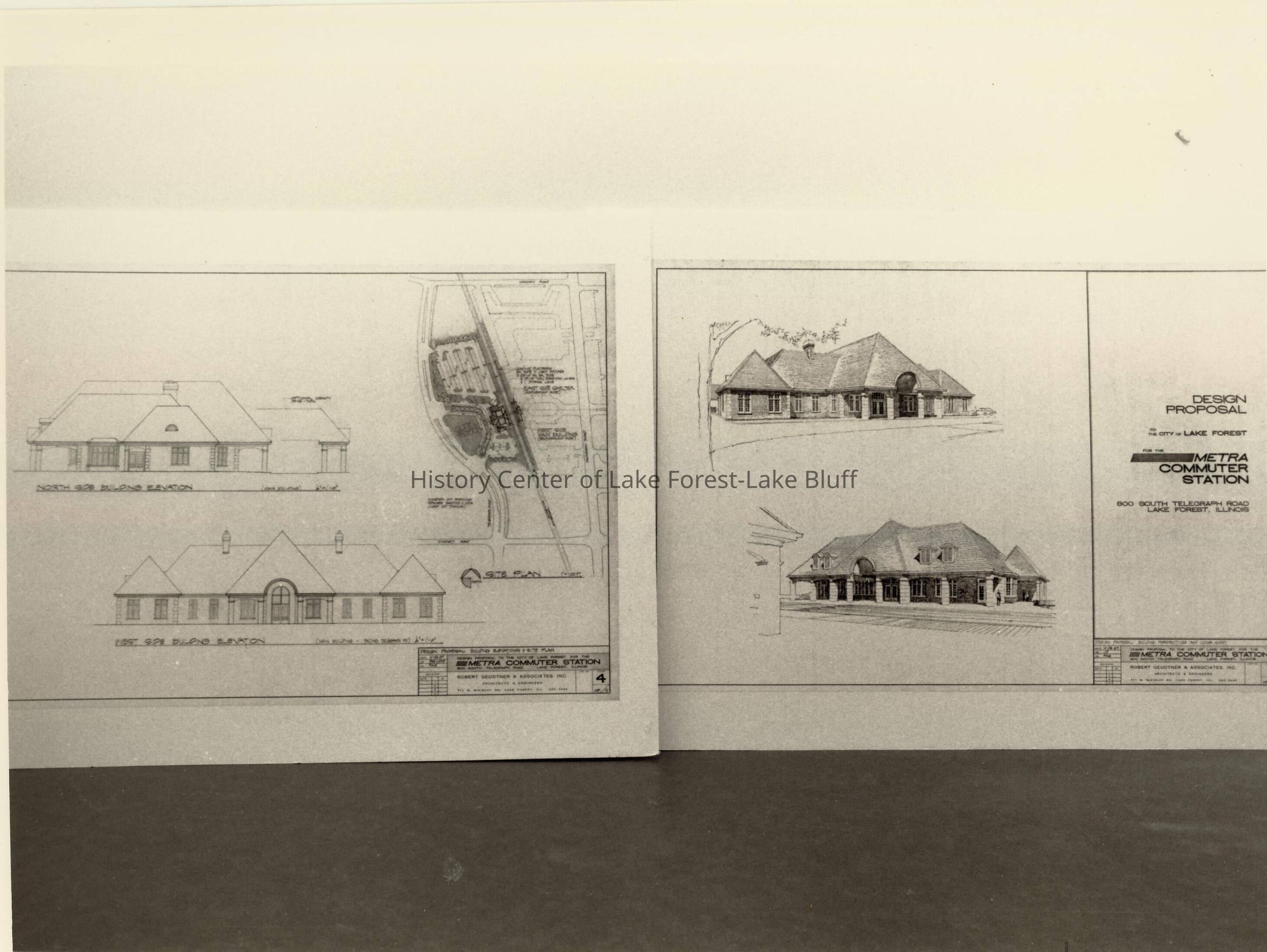 West Lake Forest Train Station - photograph of design proposal plans and renderings on a posterboard Metra Commuter Station in Lake Forest. 800 South Telegraph Road