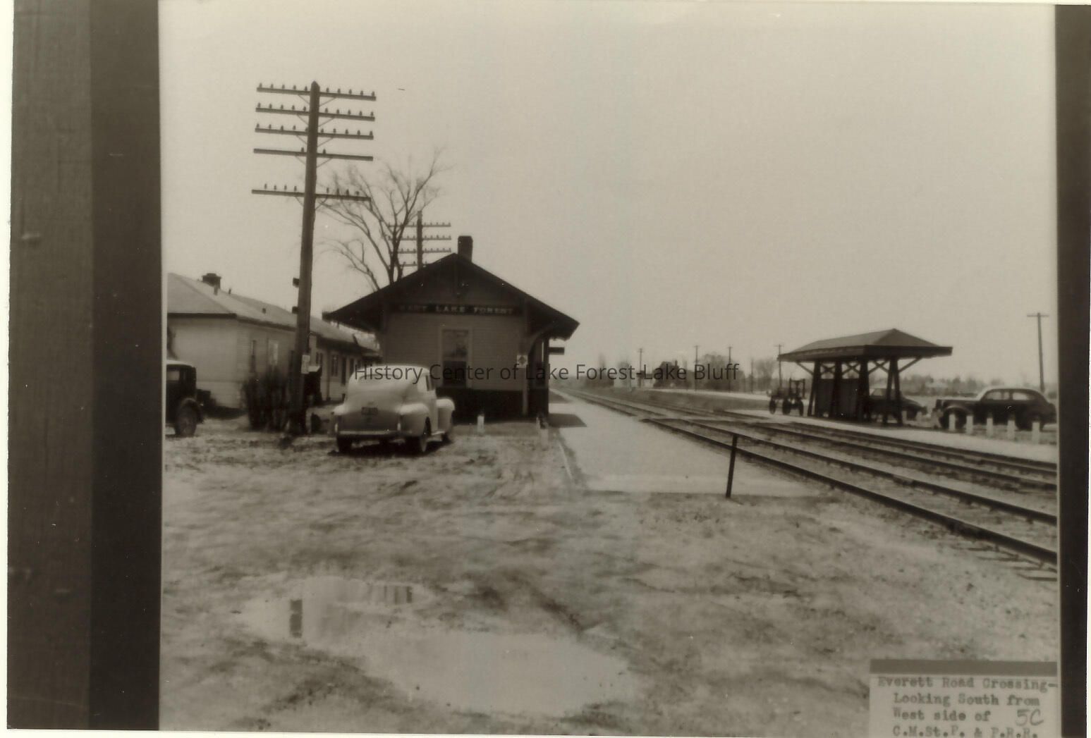 West Lake Forest Train Station Everett Road Crossing looking south from west side of C.M. St. P & P.R.R. also included is a negative of image