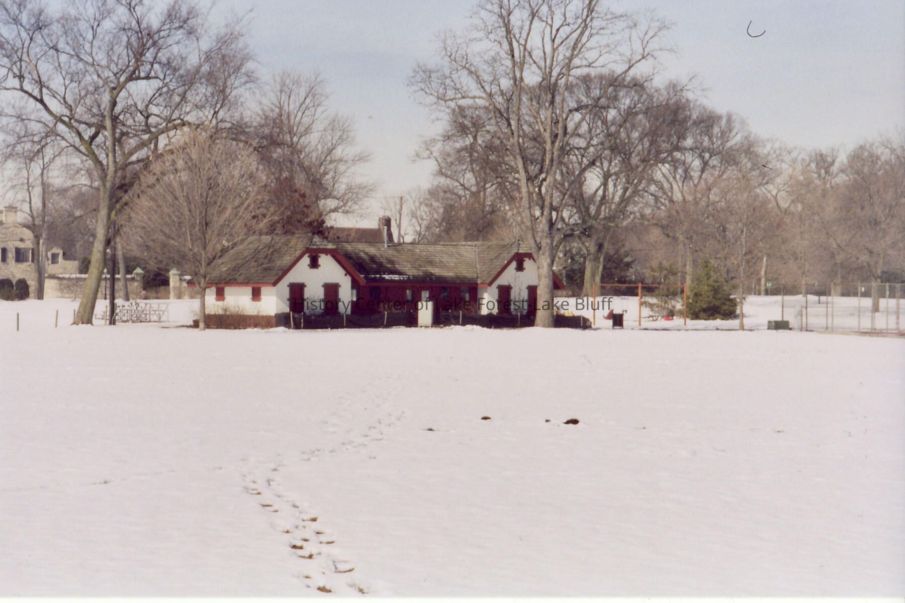 Color 4" x 6" photograph of West Park, Lake Forest, warming house 4 copies of photo, see also 2007.29.18, .20 and .21