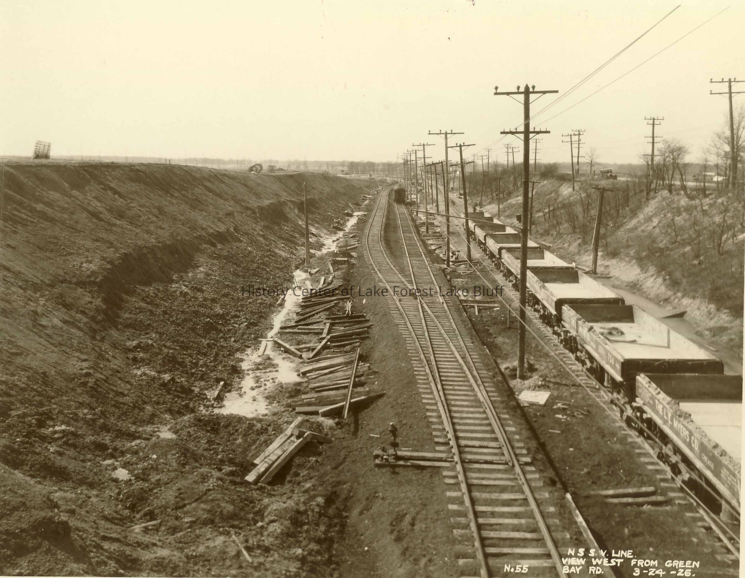 North Shore Line Skokie Valley Route Construction West view from Green Bay Road. N.S.S.V. line March 24, 1926