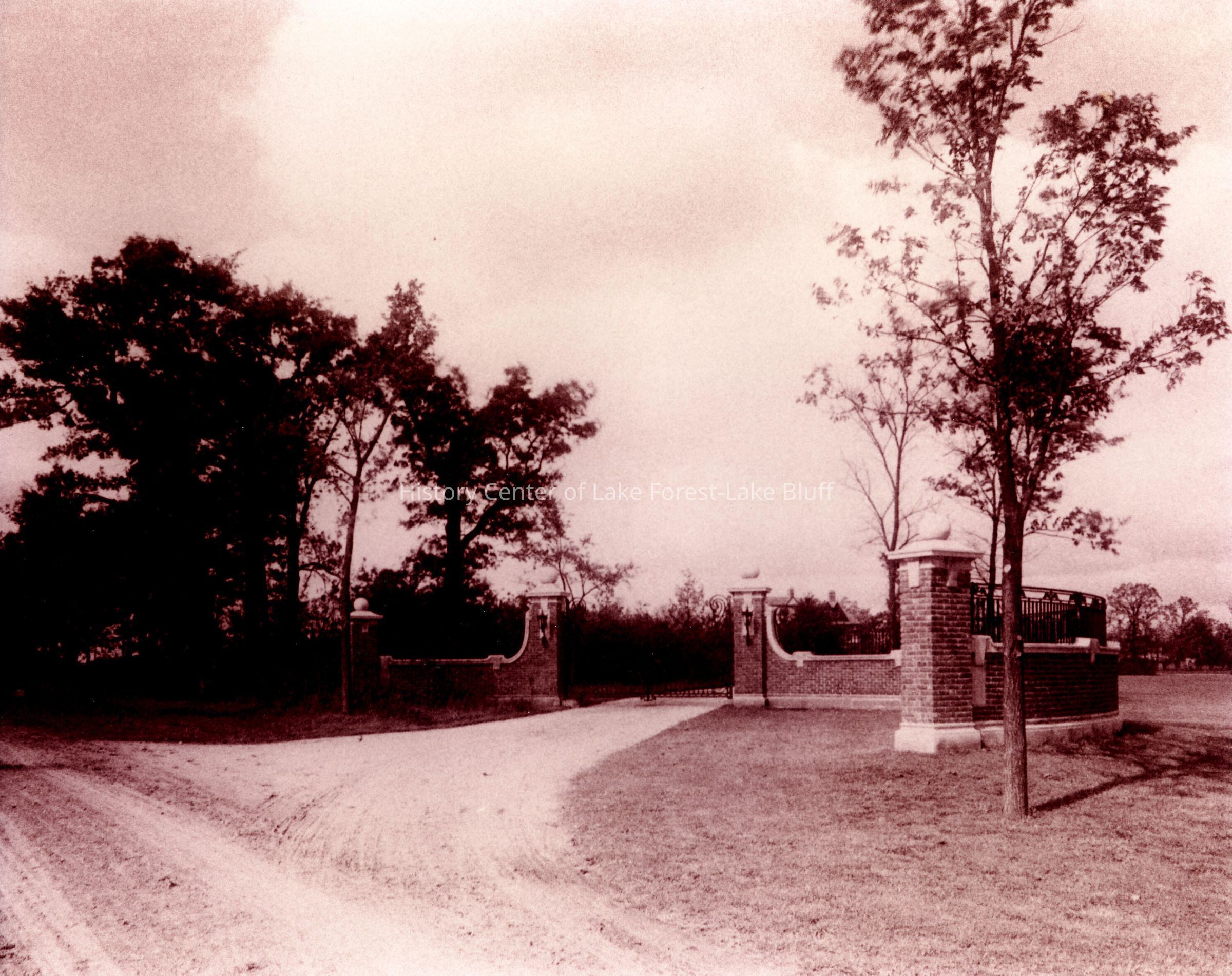 Westmoreland West Deerpath, 537-549 King Muir Road, Lake Forest Albert Blake Dick Sr. and Mary Mathews Dick James Gamble Rogers, 1903 Entrance Gates at 870 West Deerpath Exterior gates, which are still extant. duplicate photo-2002.21.23