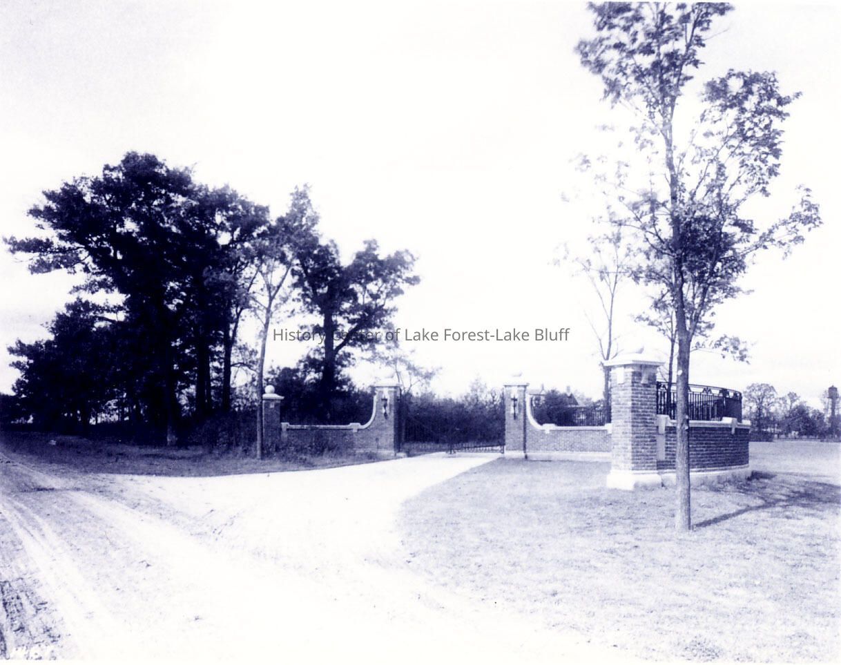 Westmoreland West Deerpath, 537-549 King Muir Road, Lake Forest Albert Blake Dick Sr. and Mary Mathews Dick James Gamble Rogers, 1903 Entrance Gates at 870 West Deerpath Main gates in summer. Gate are extant. duplicate photo is 2002.21.14