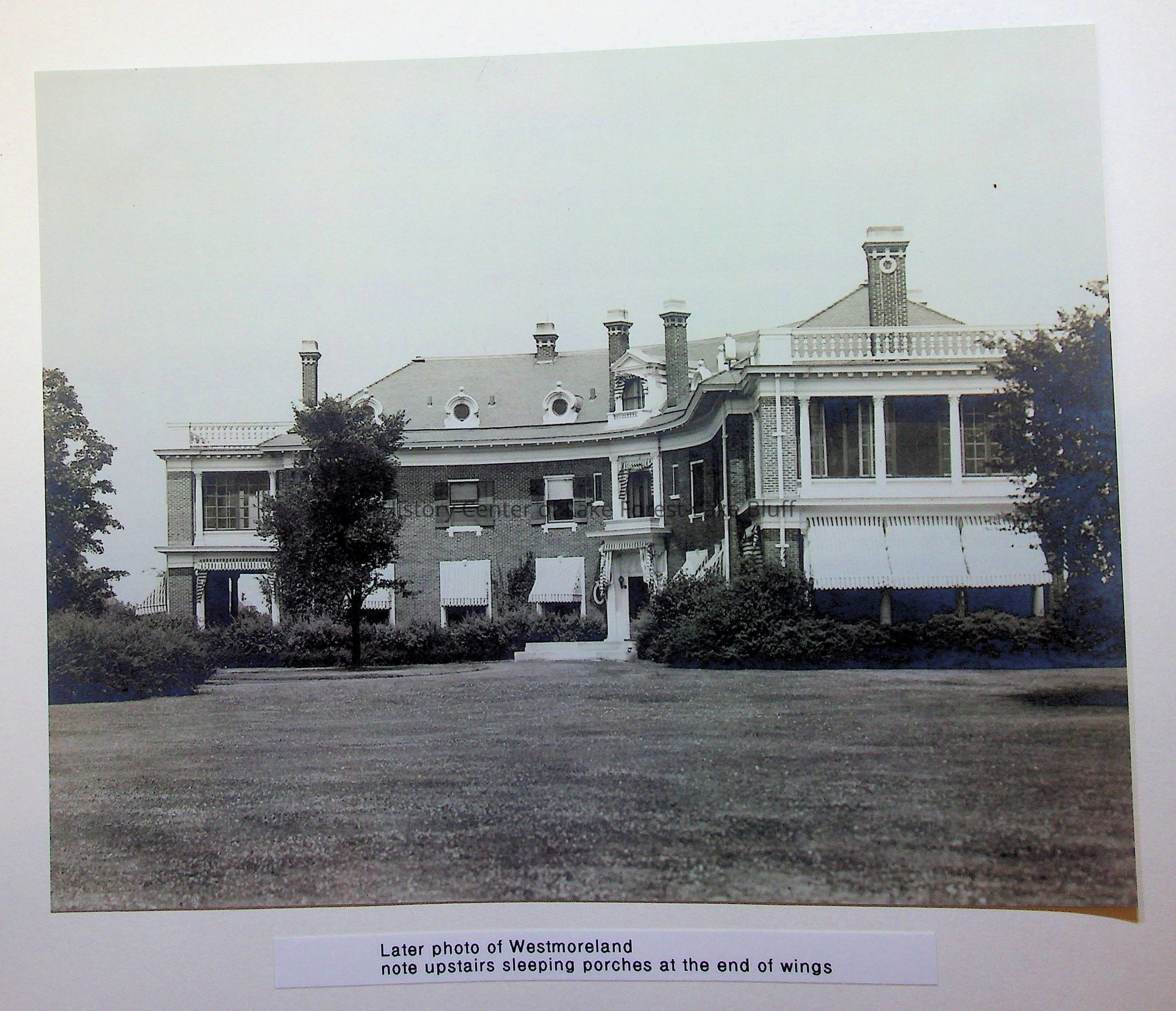 Westmoreland Farm, Dick family estate, 870 Deerpath, built 1903. Architect James Gamble Rogers. Sleeping porches at end of the wings were later additions.