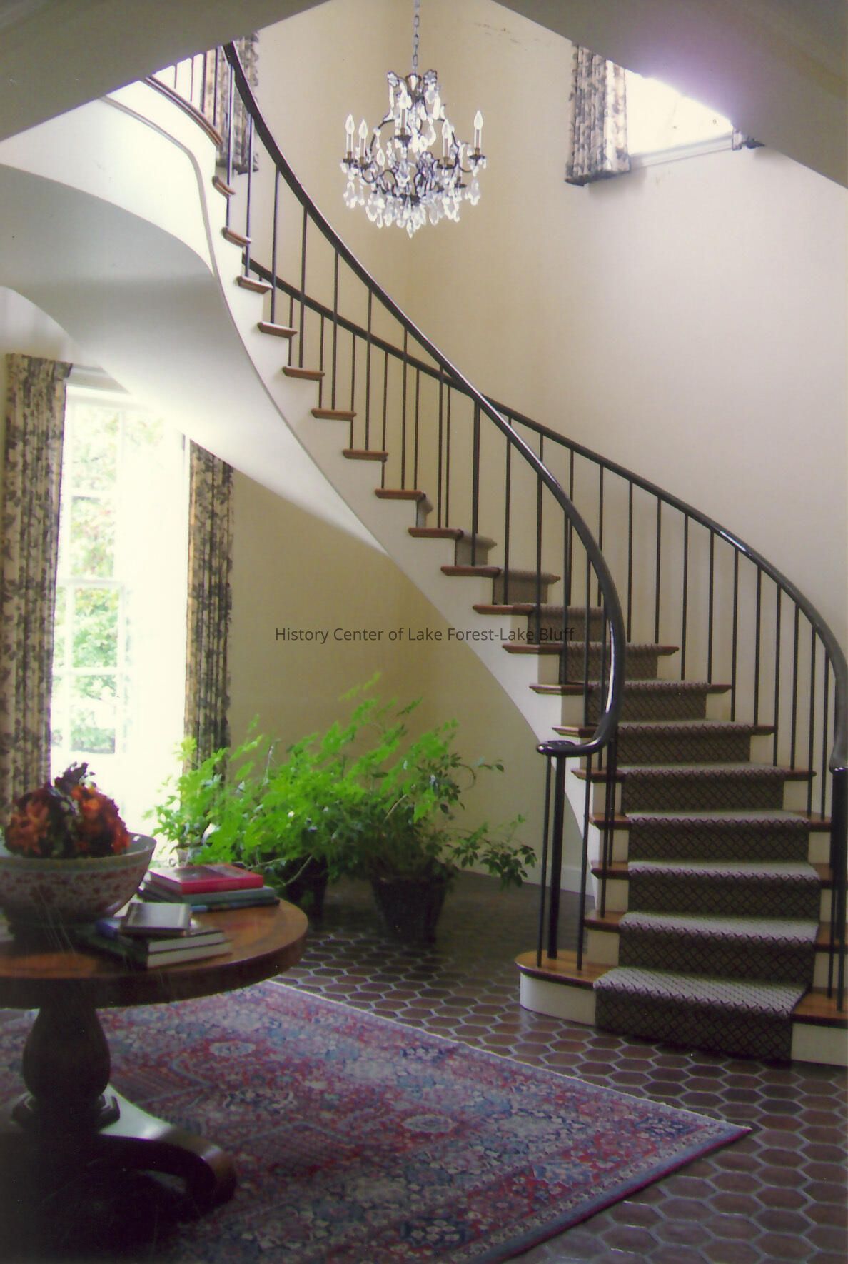 Image of staircase in Walter Frazier home built for William and Sally Searle in 1970. Located at 171 Laurel Avenue in Lake Forest, Illinois.