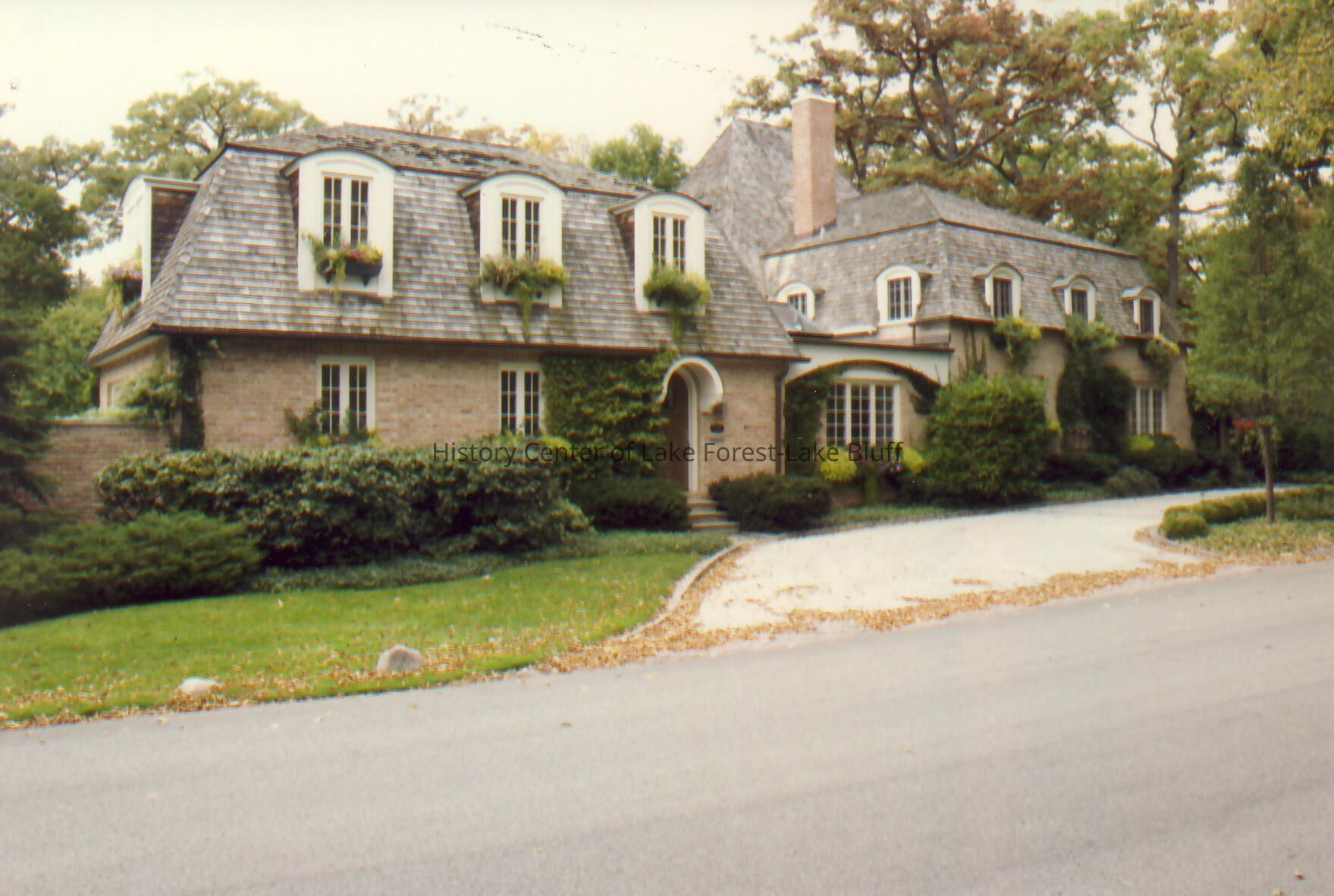 Exterior view from road of Walter Frazier home built for William C. Hubbard in 1924. Located at 1087 Edgewood Road in Lake Forest, Illinois.