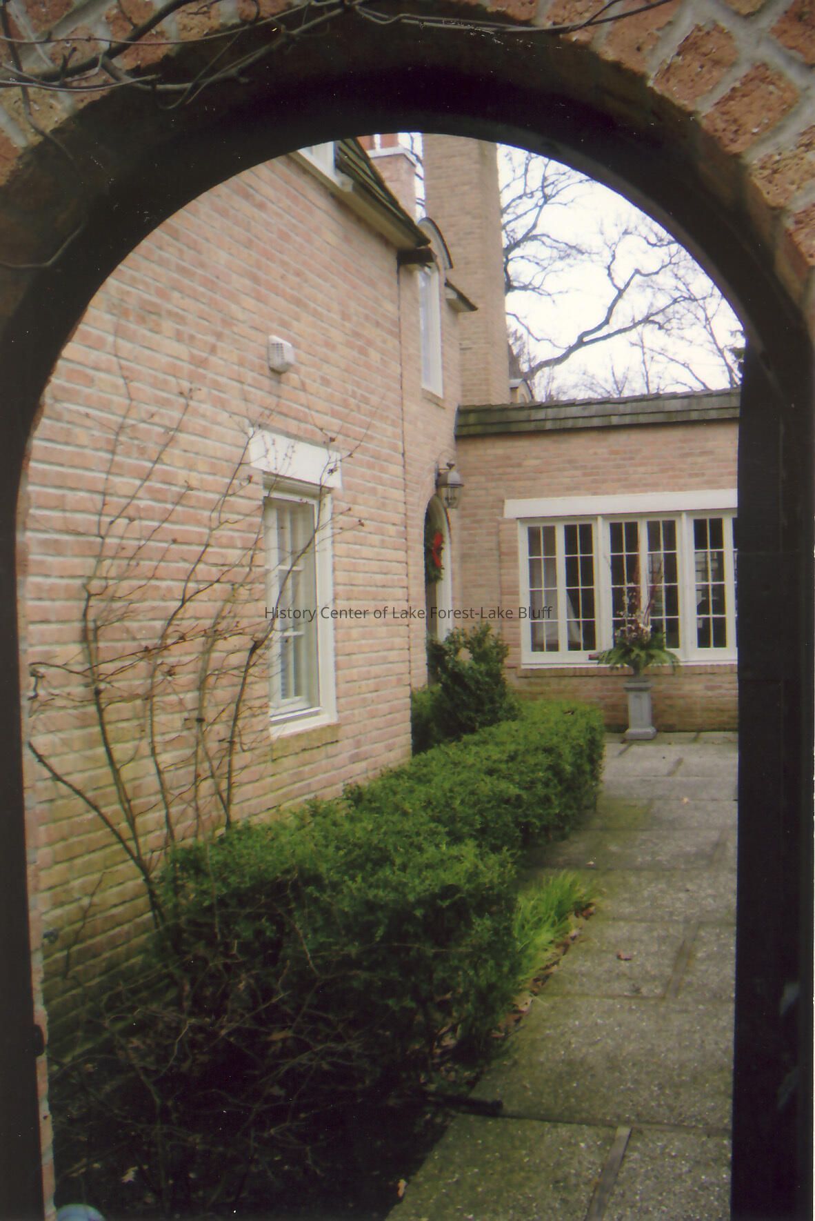 Exterior and archway of Walter Frazier home built for William C. Hubbard in 1924. Located at 1087 Edgewood Road in Lake Forest, Illinois.