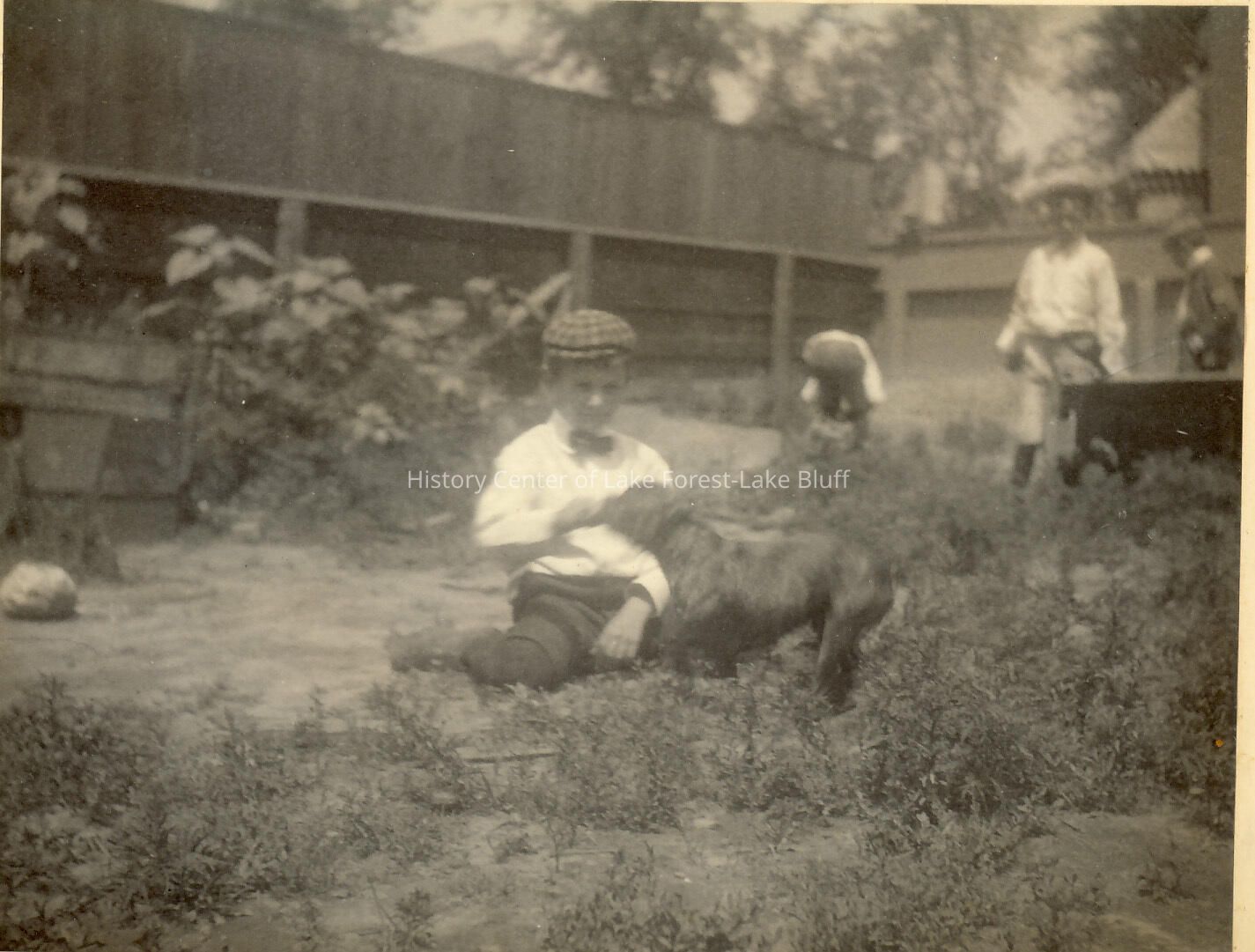 4 pictures on both sides of paper, including boy with dog