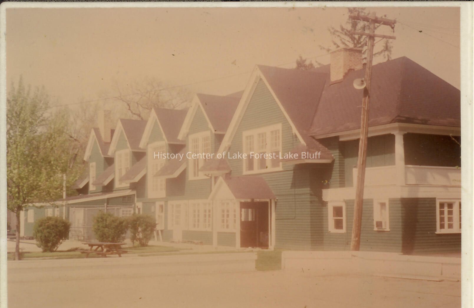 Frame building with pitched roof wall dormers and a second floor porch at one end.