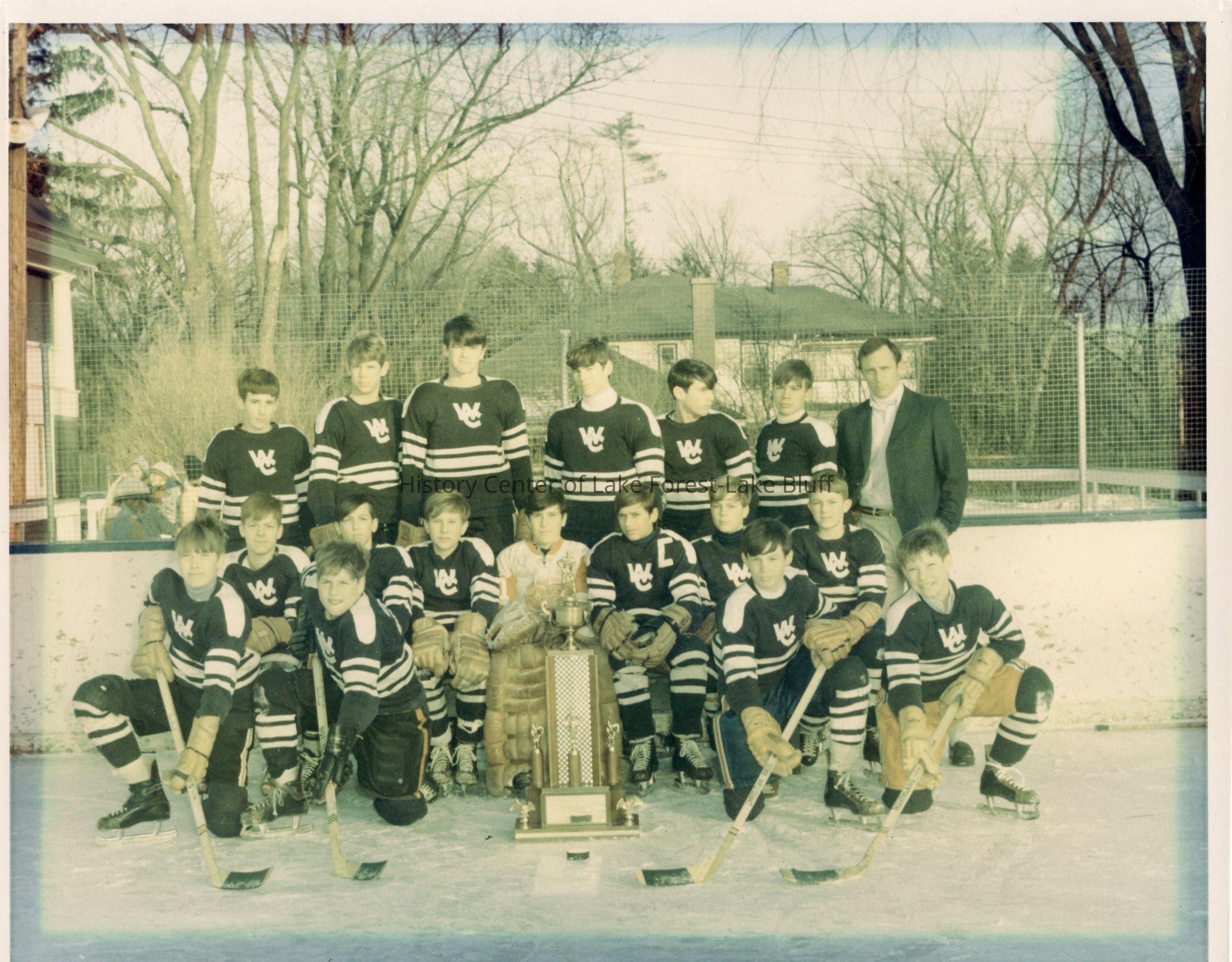 A picture of the Winter Club hockey team with a trophy.