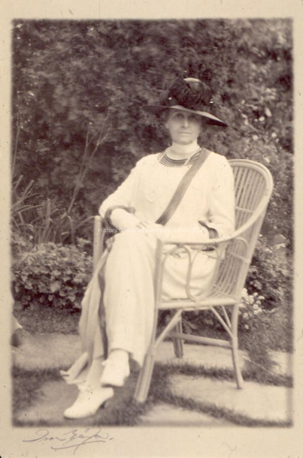 Unidentified woman on chair - is this a much later pictures, c. 1920s, of Grace Farwell Winston McGann at Fairlawn?